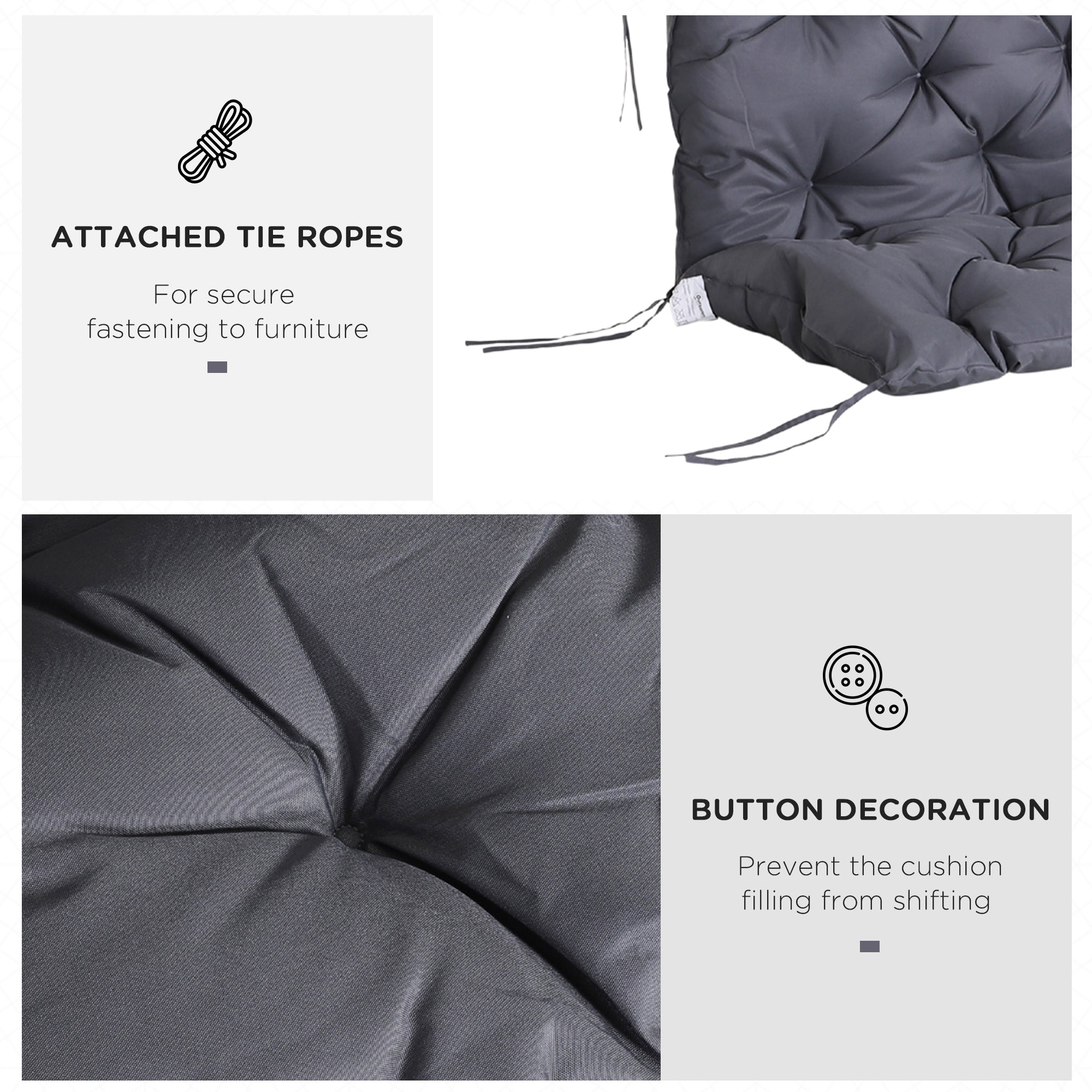 - Non-slip: Six additional ties attached to the bench help keep the swing cushion in place and prevent the padding from moving.