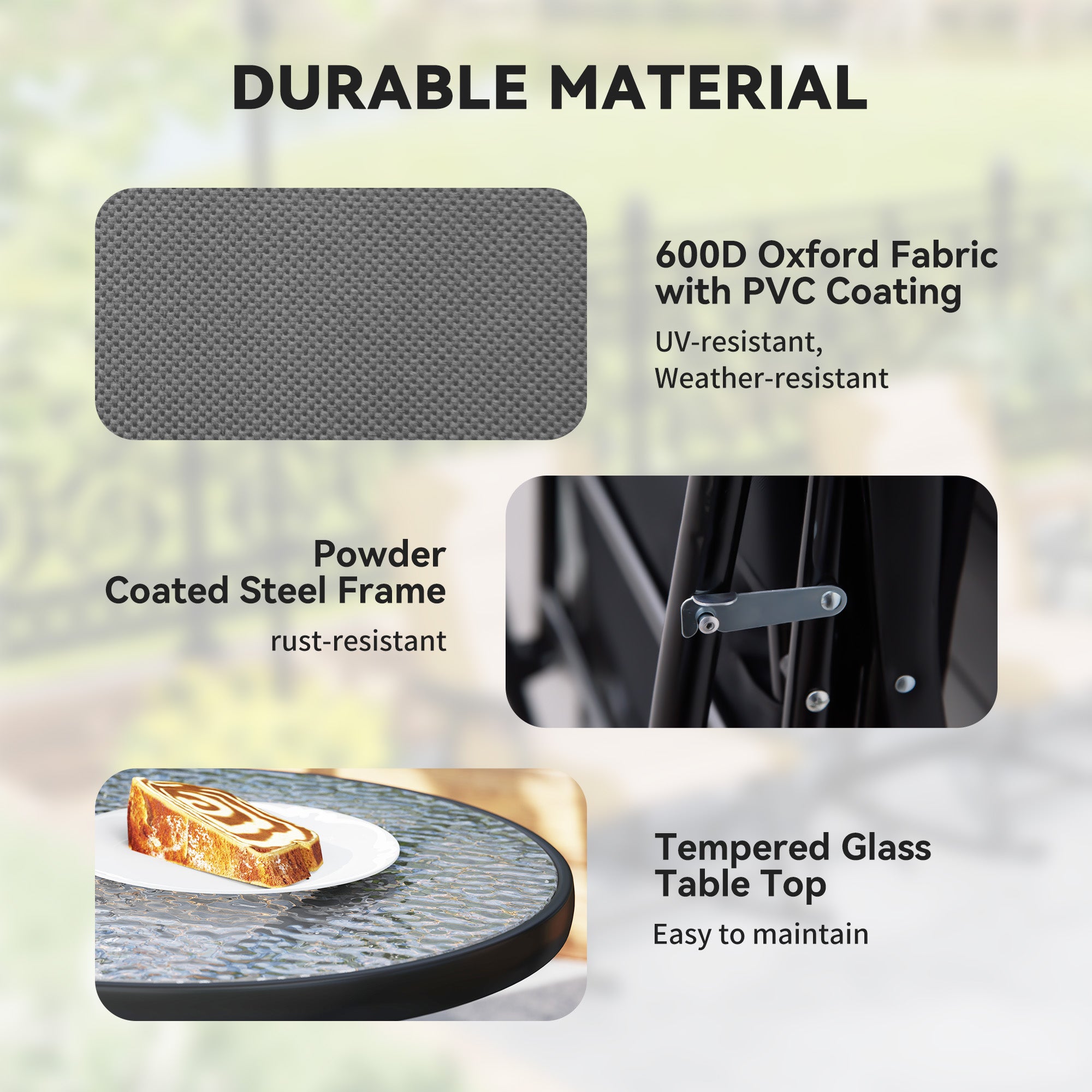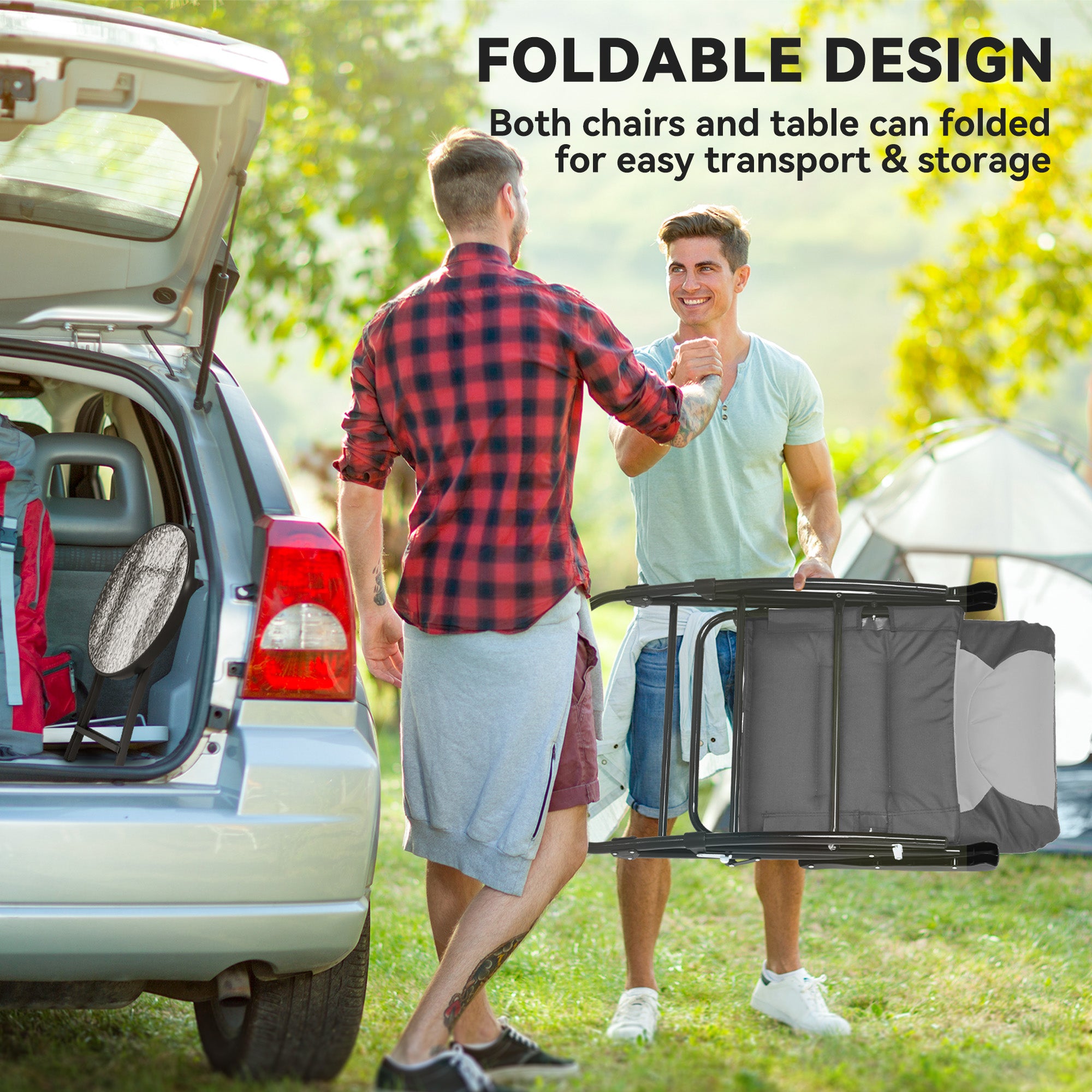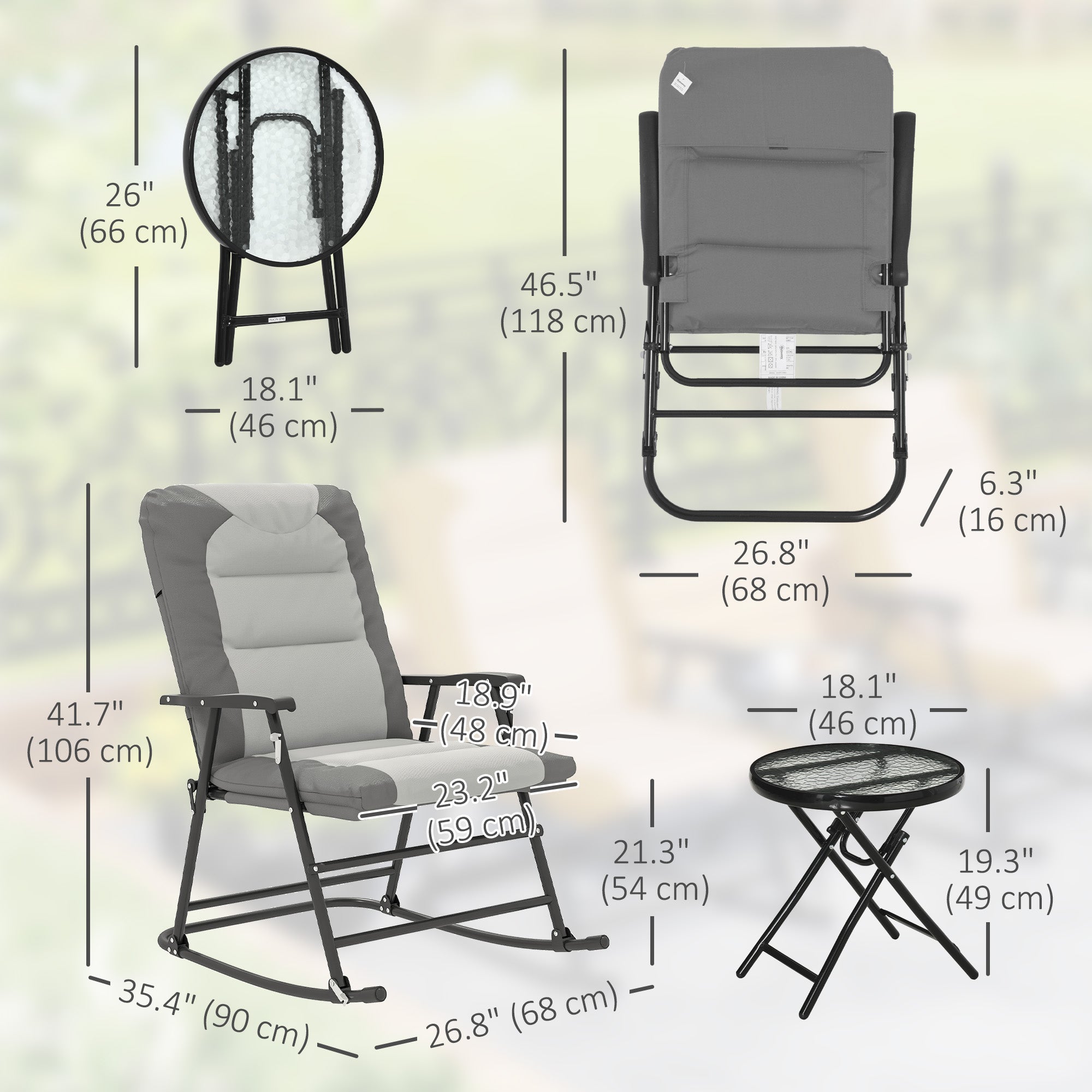 - Foldable Design: The patio rocking chairs and table feature a modern foldable design for easy setup and folding, can be easy to take along for camping, sporting events or any outdoor activities, and easy to store when not in use.