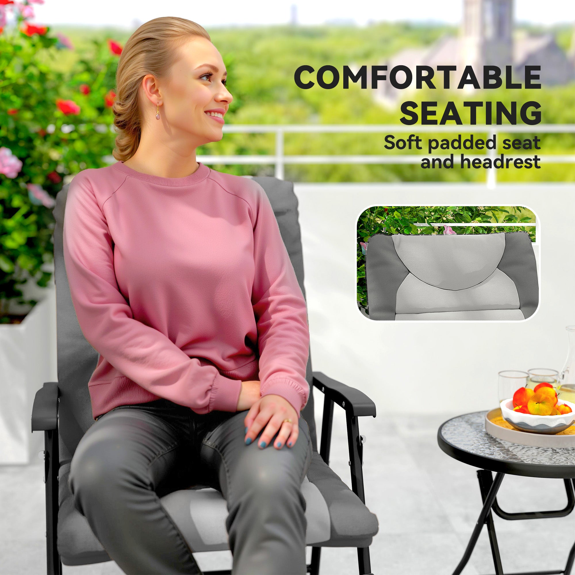 - Sturdy Frame: The rocking chairs are made of sturdy steel frame with powder coating process, wrapped with Oxford fabric for superior durability and style, soft padded headrest and seat provide comfortable seating in the morning and evening.