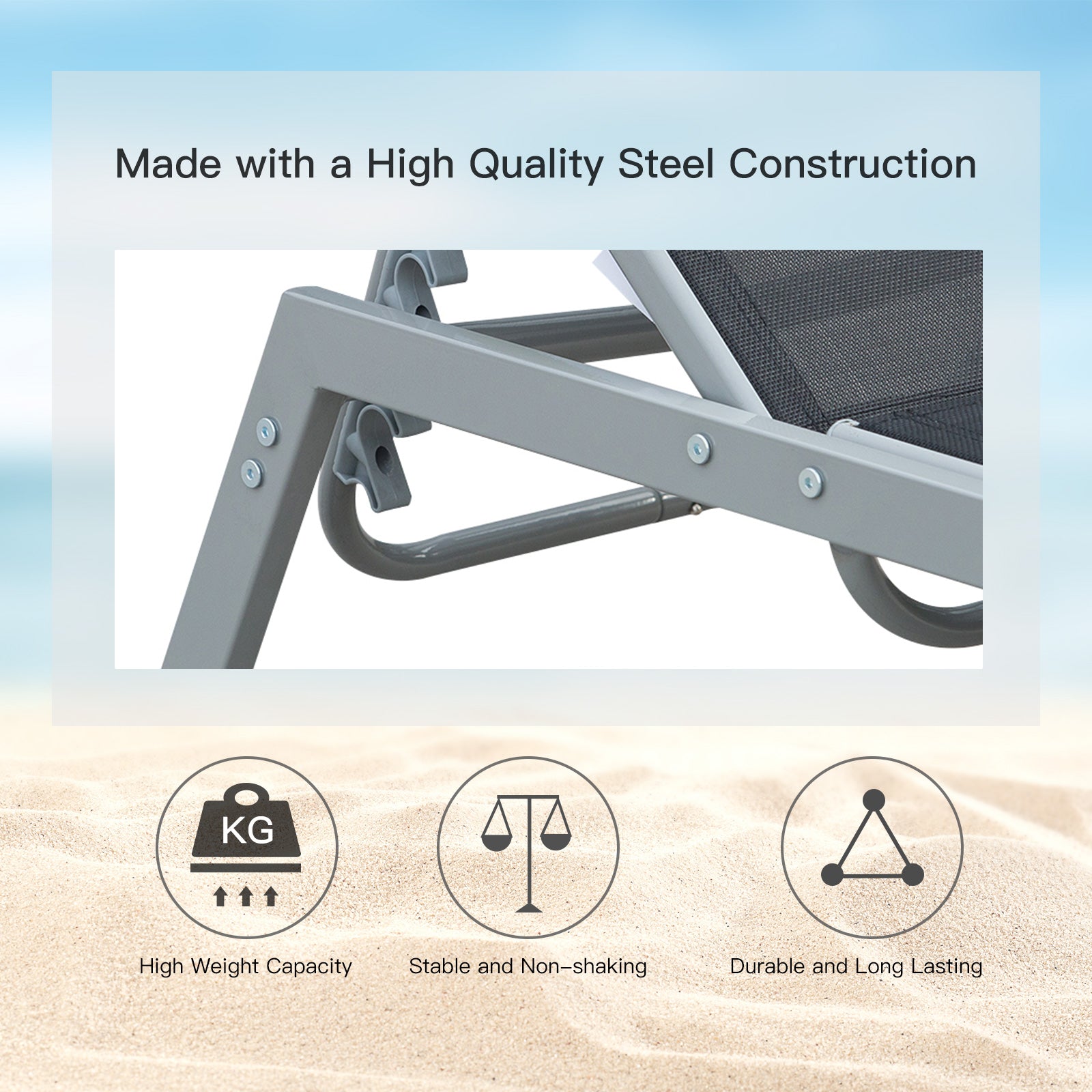 - Sturdy: Constructed with a sturdy metal frame and durable plastic fabric, this outdoor lounge chair ensures longevity and weather resistance.