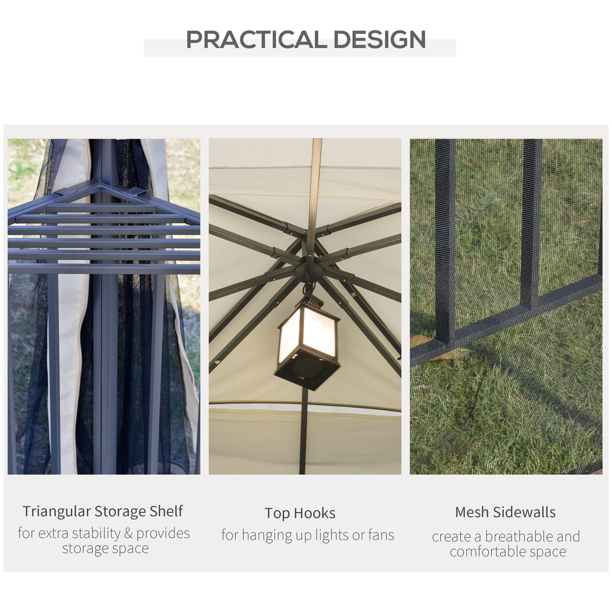 - Practical design: With its 4 removable zippered mesh side walls, it protects against mosquitoes and ensures good interior ventilation. Equipped with a triangular shelf at each corner for added stability, this garden gazebo offers a display space for your plants.