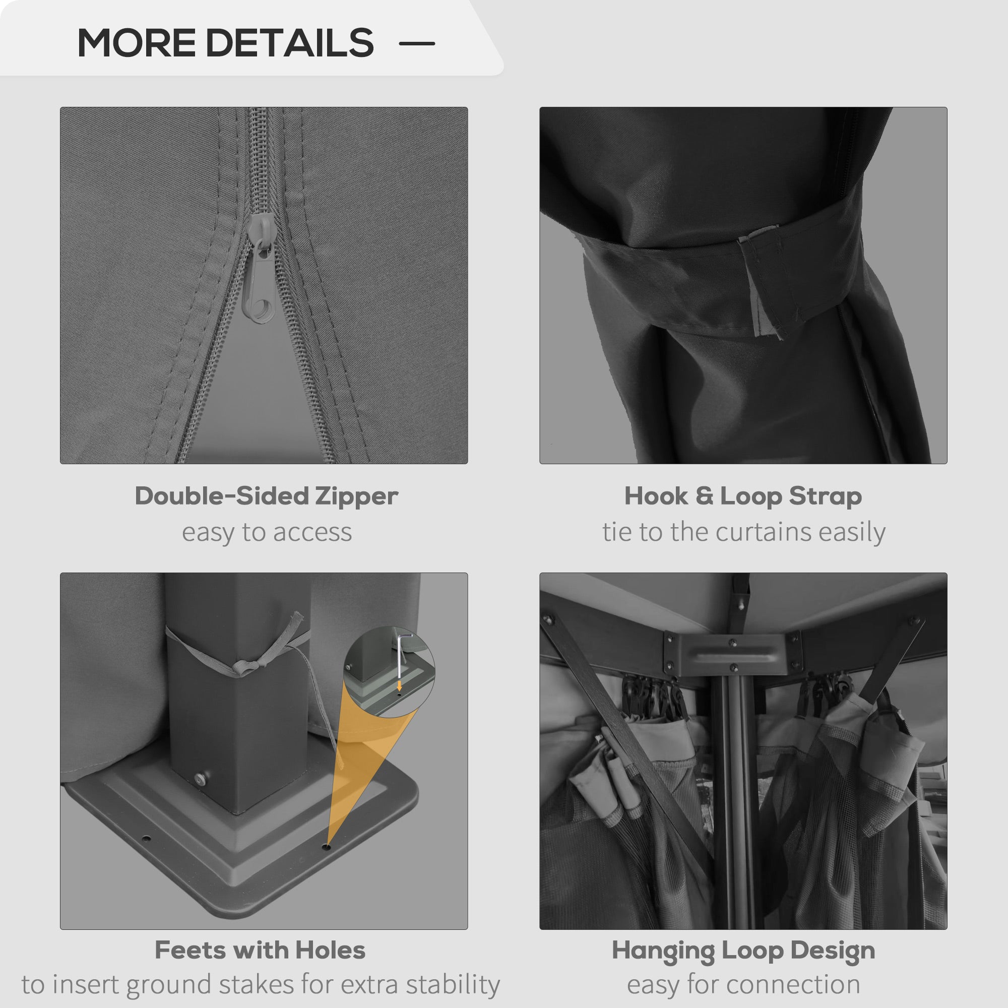 - Two-tiered roof: The gazebo features a double-ventilated roof. This double-roof design enhances the overall appearance and promotes air circulation, creating a comfortable and open space for your enjoyment.