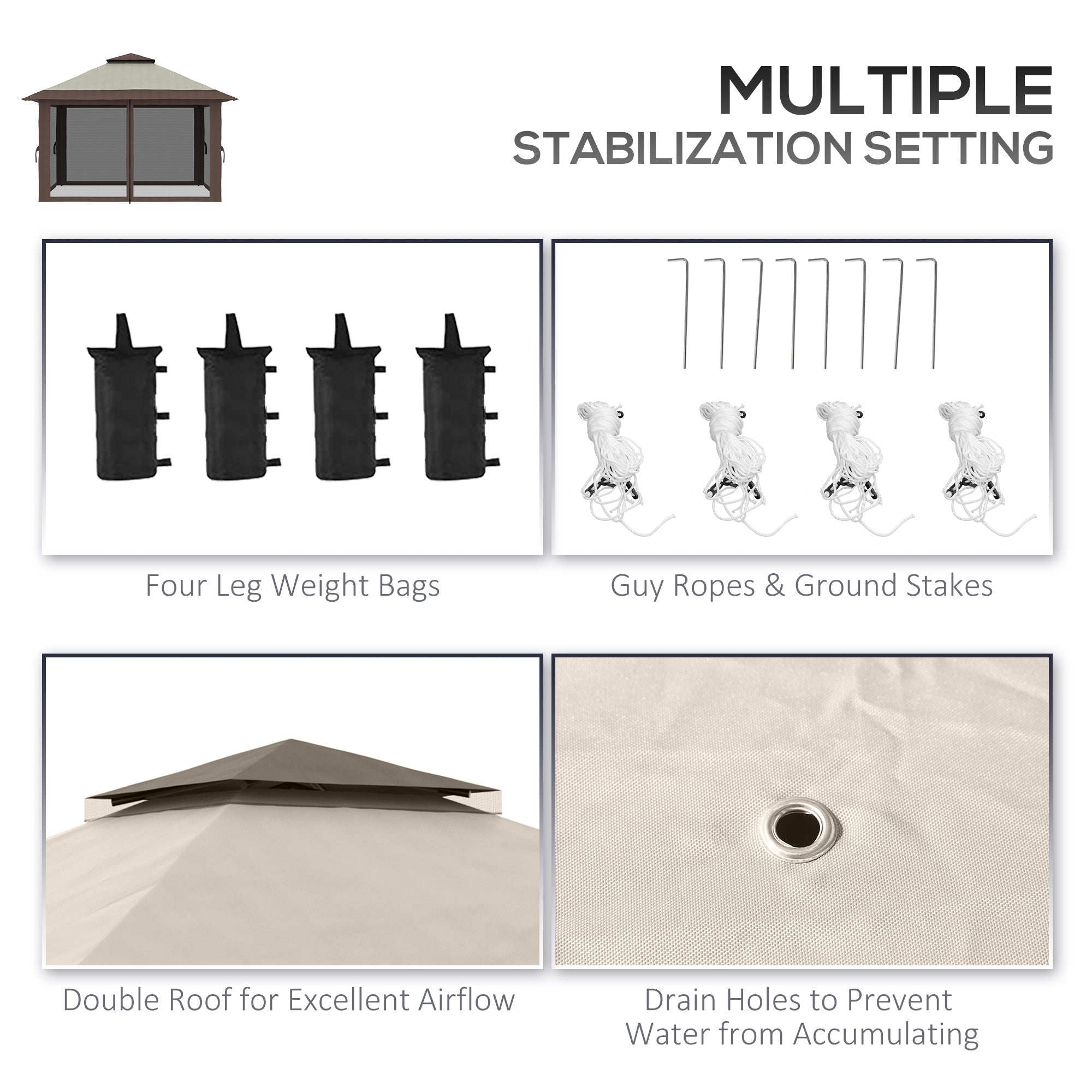- Optimal Ventilation and Stability: The two-tiered roof of our outdoor tent improves wind resistance and creates a well-ventilated space. Ropes, stakes, and weighted bags integrate with the roof vent for better stability. Each weighted bag can hold 9.5 kg of water or 12.5 kg of sand.