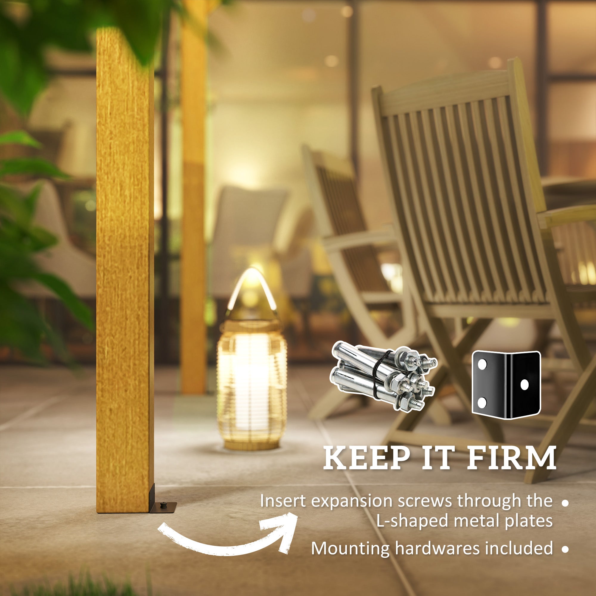 - Sturdy Construction: Constructed with sturdy posts, braces, and beams, this patio pergola is reinforced to withstand harsh weather conditions. It comes with expansion screws and L-shaped plates for easy installation on solid surfaces like concrete.
