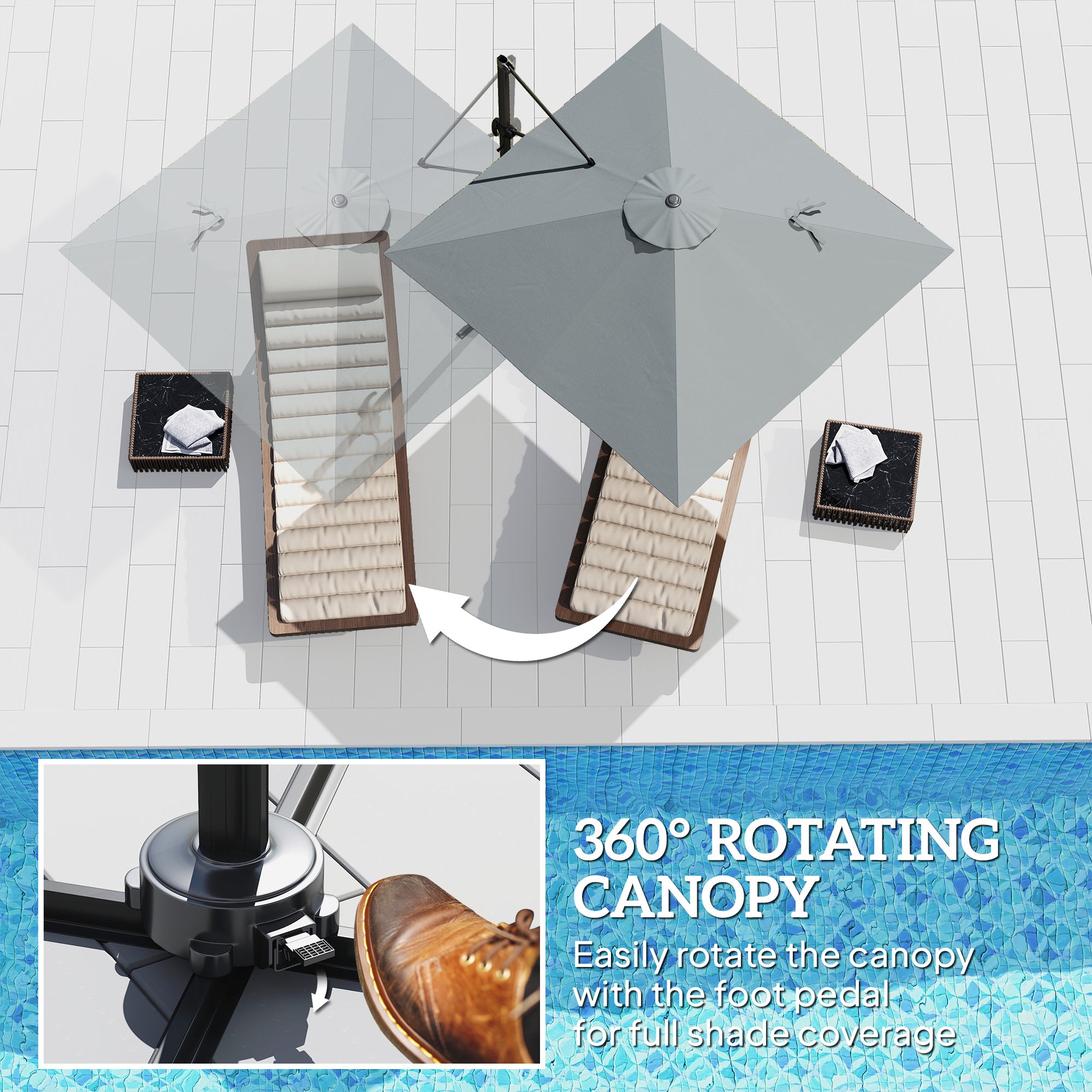 - 360° Rotation: Controlled by a foot pedal to move the cantilever patio umbrella canopy to the desired position, keeping you shaded from morning to night