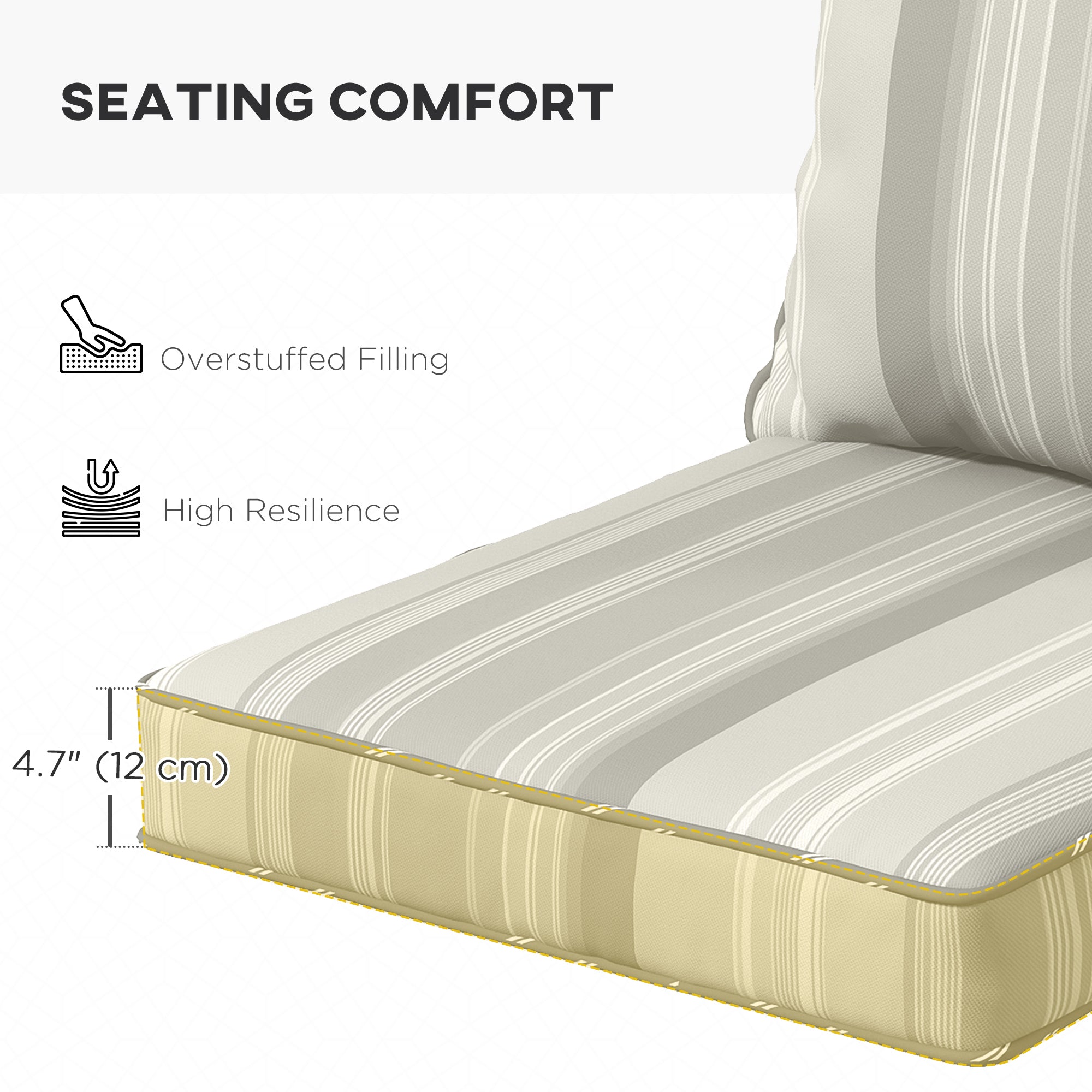 - Comfortable Seating: Designed to provide great resilience and softness, our outdoor furniture cushions are filled with two different types of filling to allow you to enjoy hours of relaxation in the sun. They quickly return to their original shape when you get up.