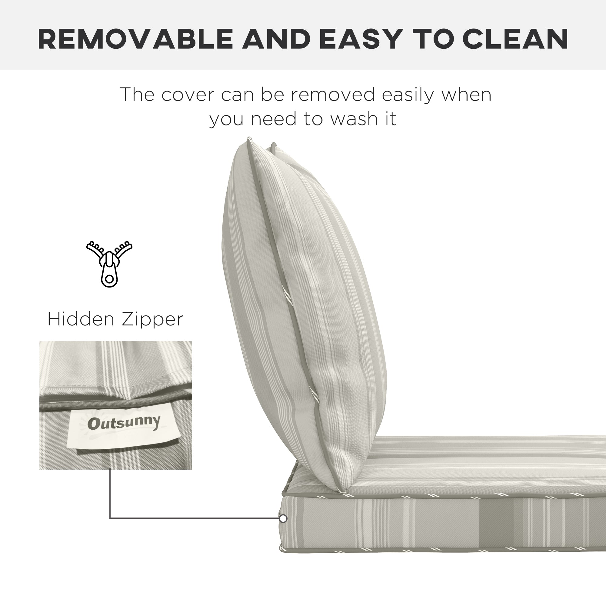 - Outdoor Patio Chair Cushions Information: Seat Cushion Dimensions: 24.4" L x 24.4" W x 4.7" H (62 x 62 x 12 cm), Back Cushion Dimensions: 24.4" L x 20.5" W x 5.9" H (62 x 52 x 15 cm). Compatible Outsunny Chair SKU: 860-142; Please contact us for the product website link if you need. Note: Please measure your furniture size carefully before purchasing to make sure our cushion set fits well.