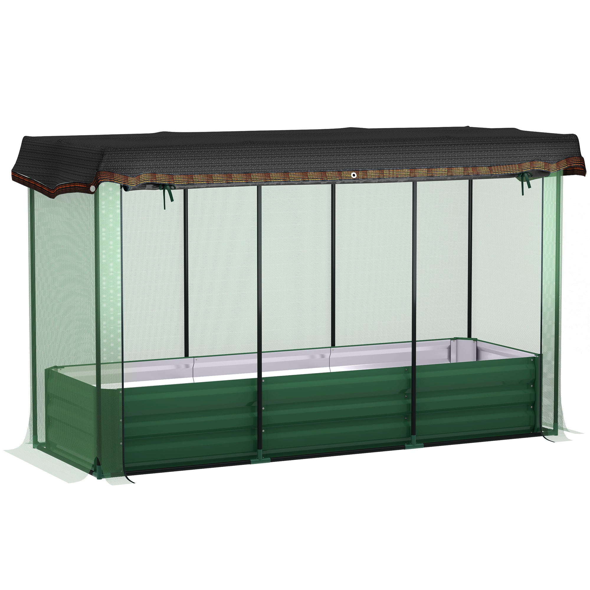 - Overall Dimensions: 72.8" W x 25.6" D x 43.3" H (185 x 65 x 110 cm), Garden Bed Size: 70.9" W x 23.6" D x 11.8" H (180 x 60 x 30 cm), Grow Cage Size: 72.8" W x 25.6" D x 43.3" H (185 x 65 x 110 cm), Shade Cloth Size: 86.6" W x 39.4" D (220 x 100 cm).