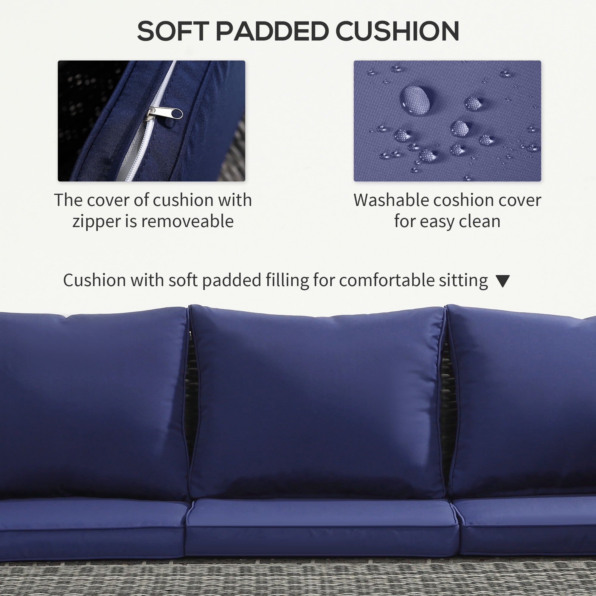 - 6-Piece Patio Set: This 7-seater outdoor patio furniture set includes a three-seater sofa, a loveseat, two armchairs, a storage coffee table, and a storage chest used as a side table - easy to combine into any configuration you like, such as "3+3" or "2+4".