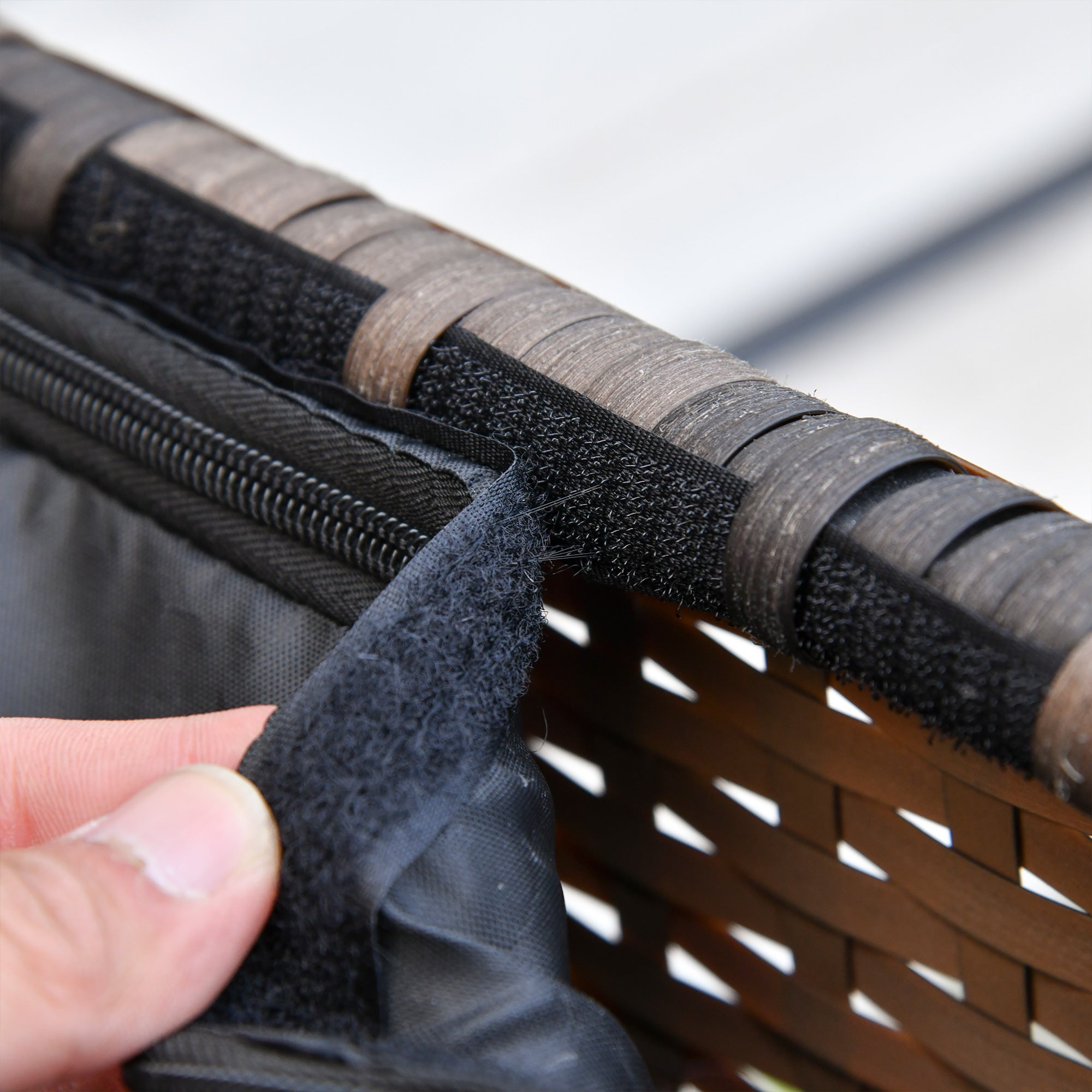 - Clever storage tables: This garden set includes a coffee table and a side table. Waterproof inner bags keep items dry. Gas struts ensure smooth lid opening, while clip latches secure the closure. Keep your cushions and your space tidy.