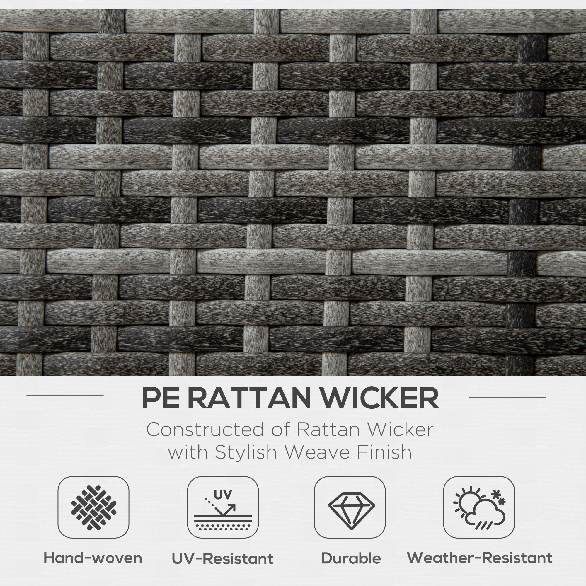 - Durable Material: This outdoor dining set is made of rust-proof metal frame with powder coating. The hand-woven PE wicker is strong enough to withstand all weather conditions. The accessories are equipped with 4 buckles.