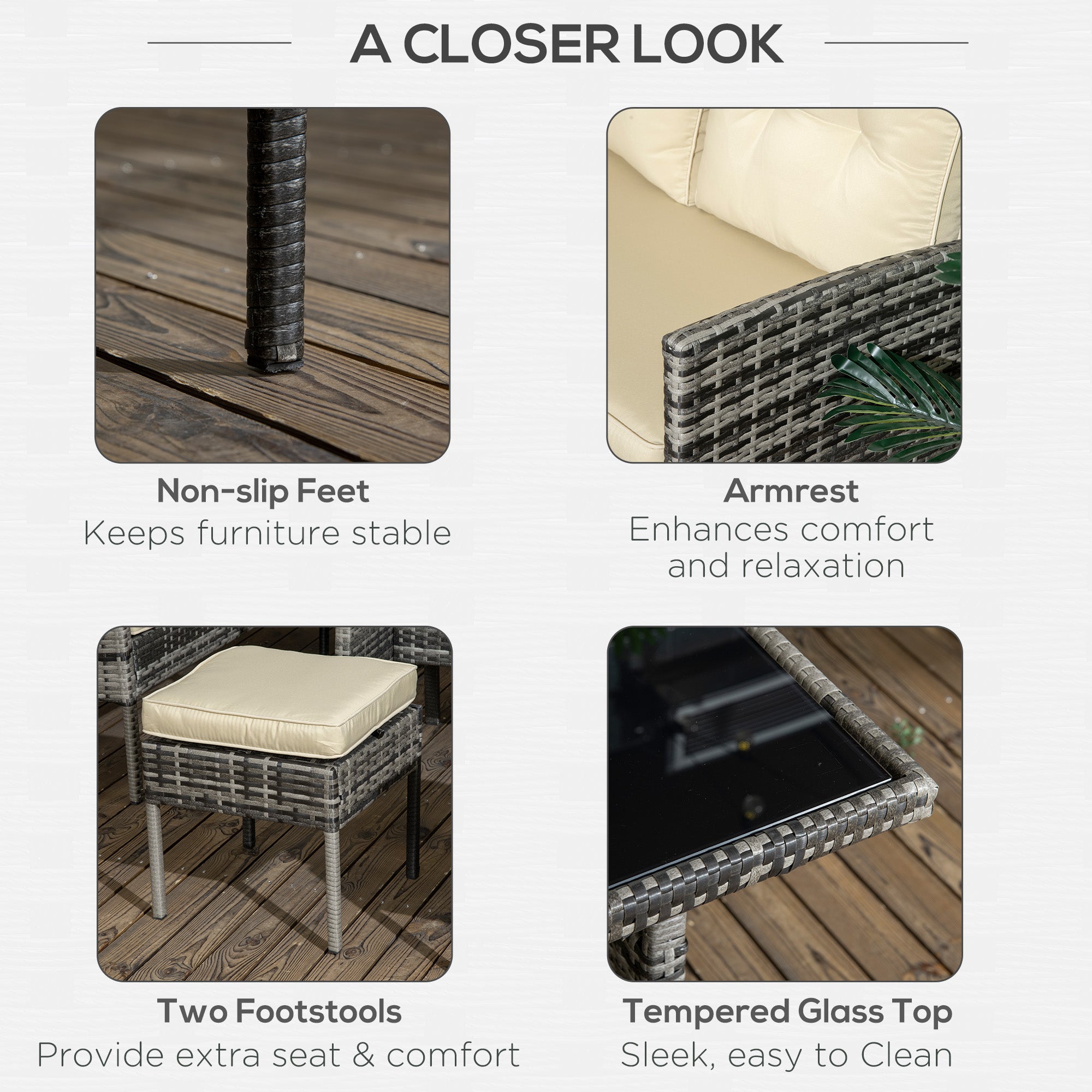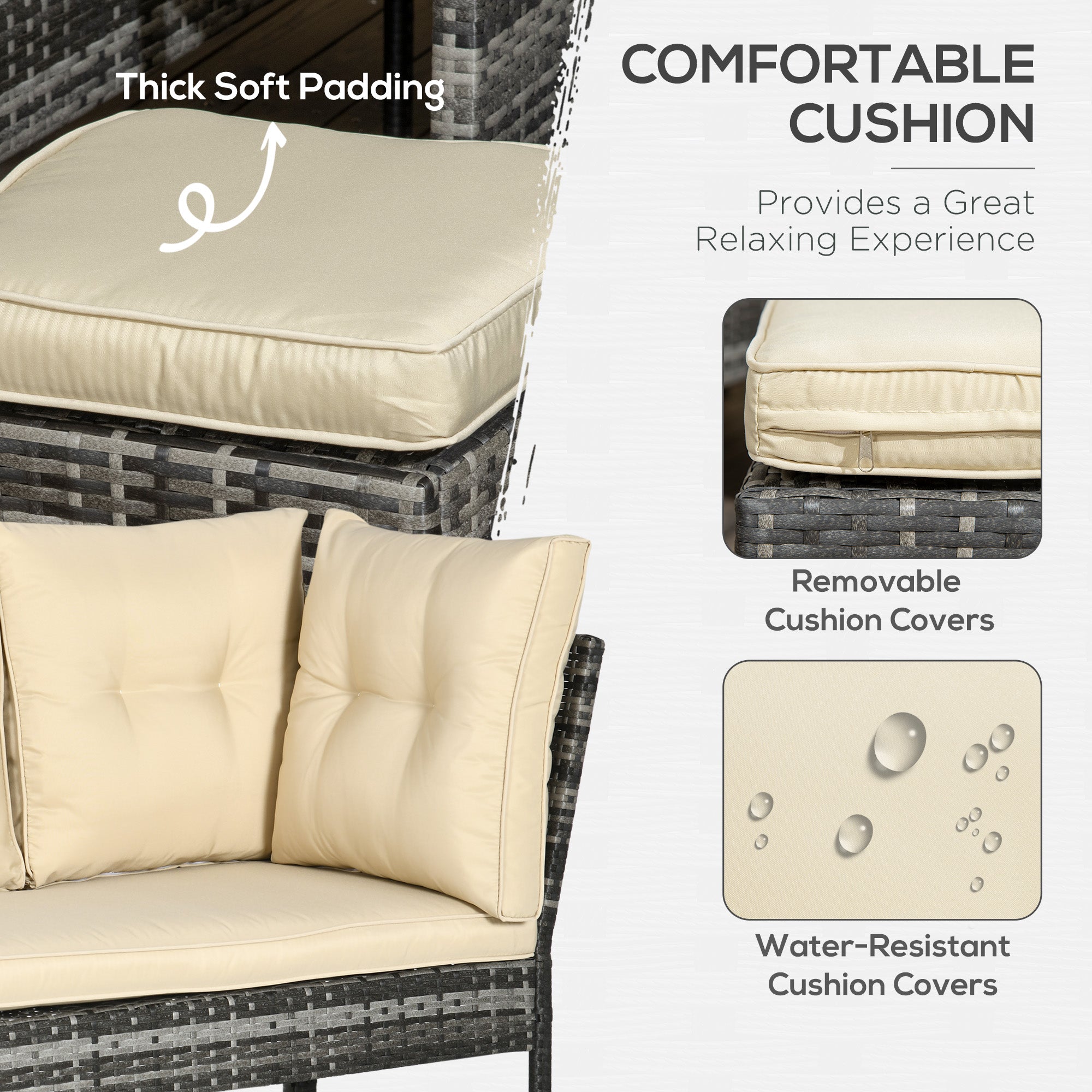 - Comfortable Seat Cushion: The soft seat cushions and extra-thick back cushions provide an optimal outdoor seating experience. The seat cushion covers have easy-to-remove and washable zippers.