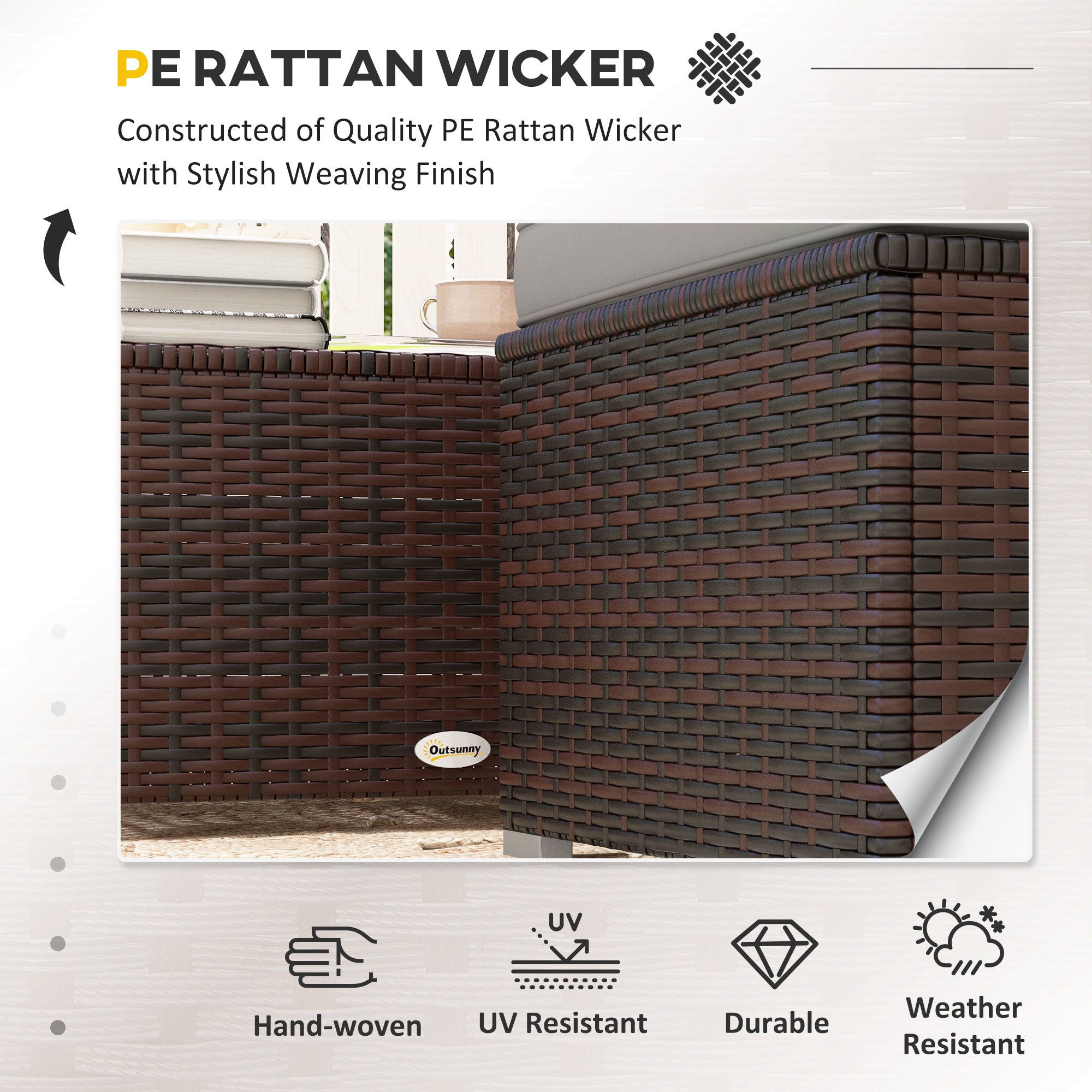 - High-quality materials: This garden furniture set is made of a rust-proof galvanized steel frame with a powder-coated finish for strength and stability, and is wrapped in premium wicker. The frame and outdoor fabric of our set are waterproof, rust-proof, and have been selected to withstand the stresses of outdoor use.