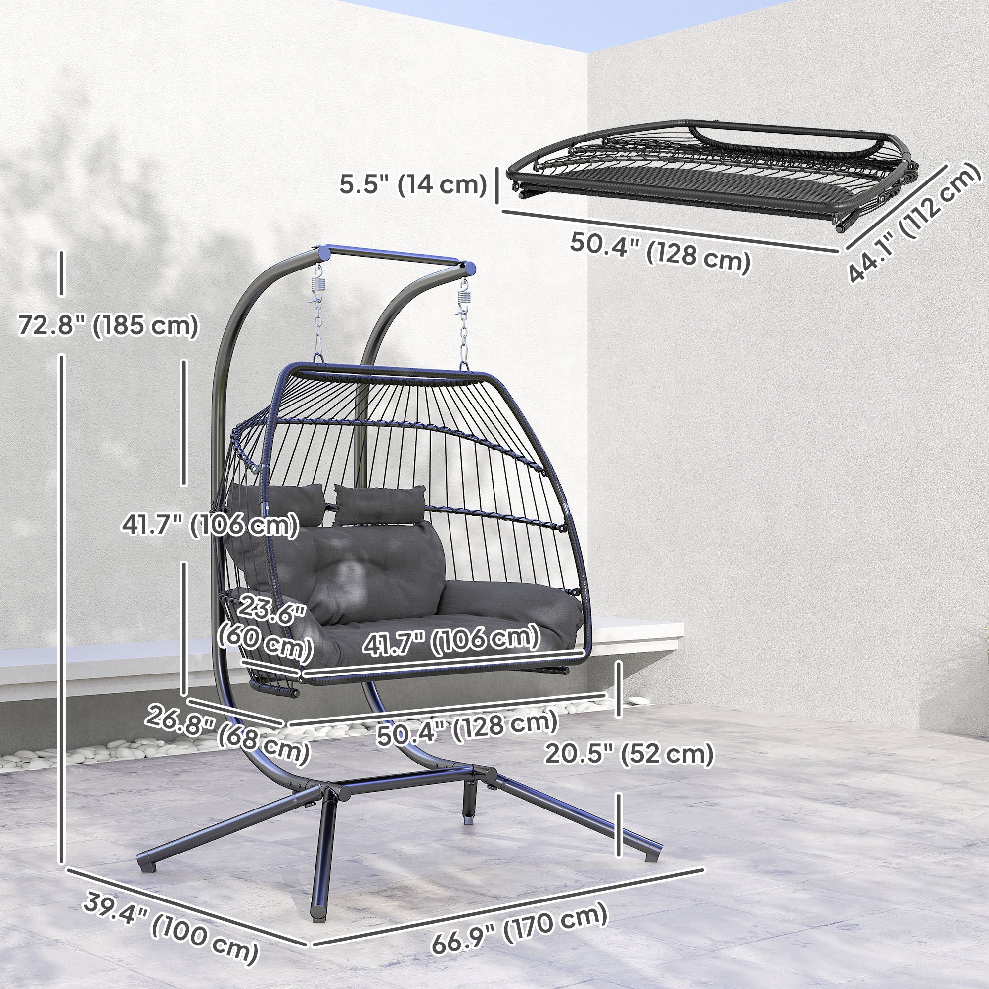 - 2 Person Swing Chair: This oversized wicker swing chair supports up to 573 lbs (260 kg) and comfortably fits two people, ideal for gardens, balconies, outdoor porches - even some indoor spaces too.