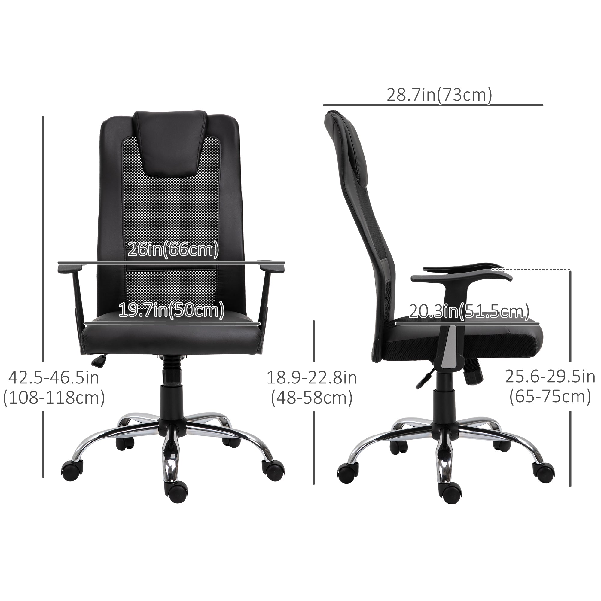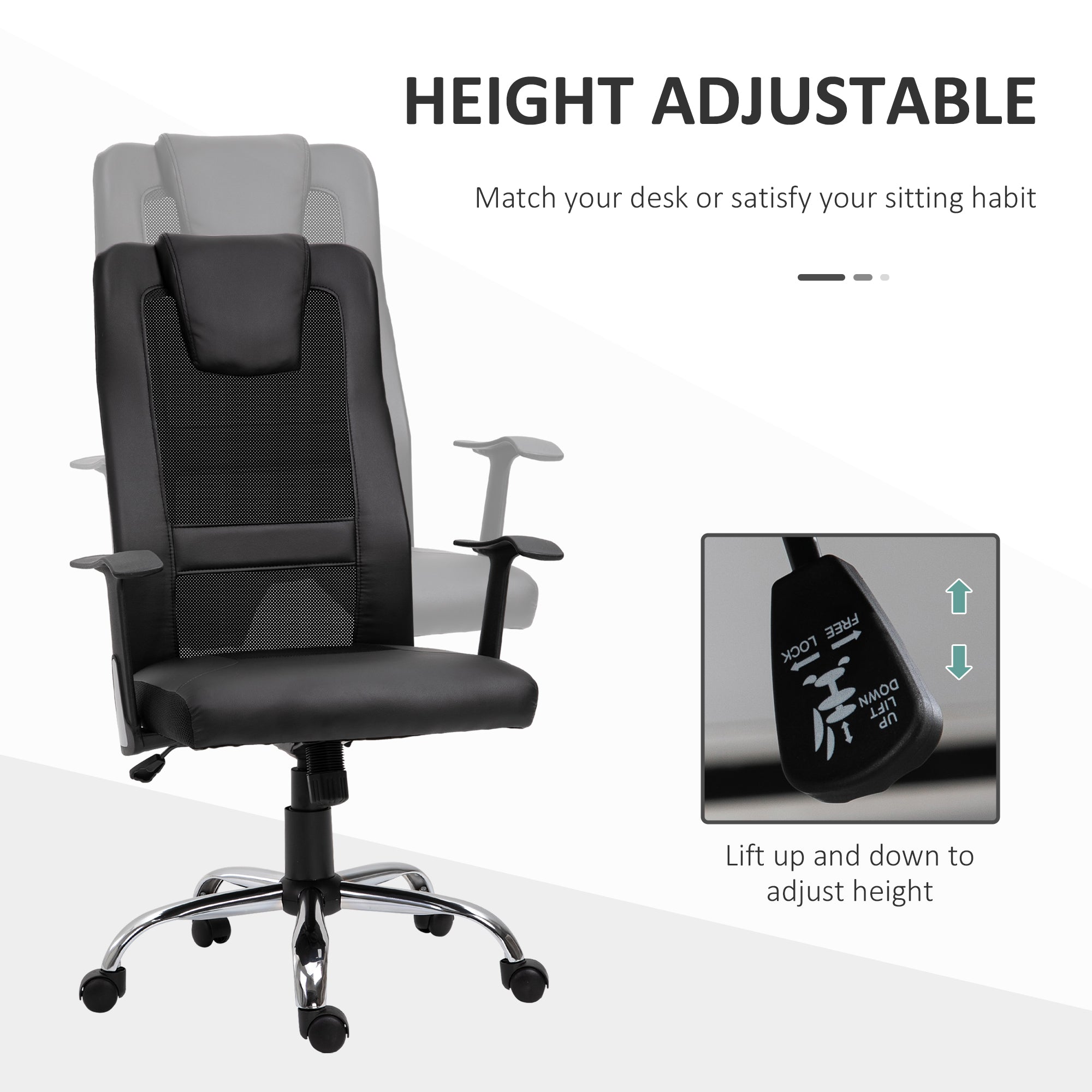 Ergonomic executive chair in mesh and faux leather with high back – Black