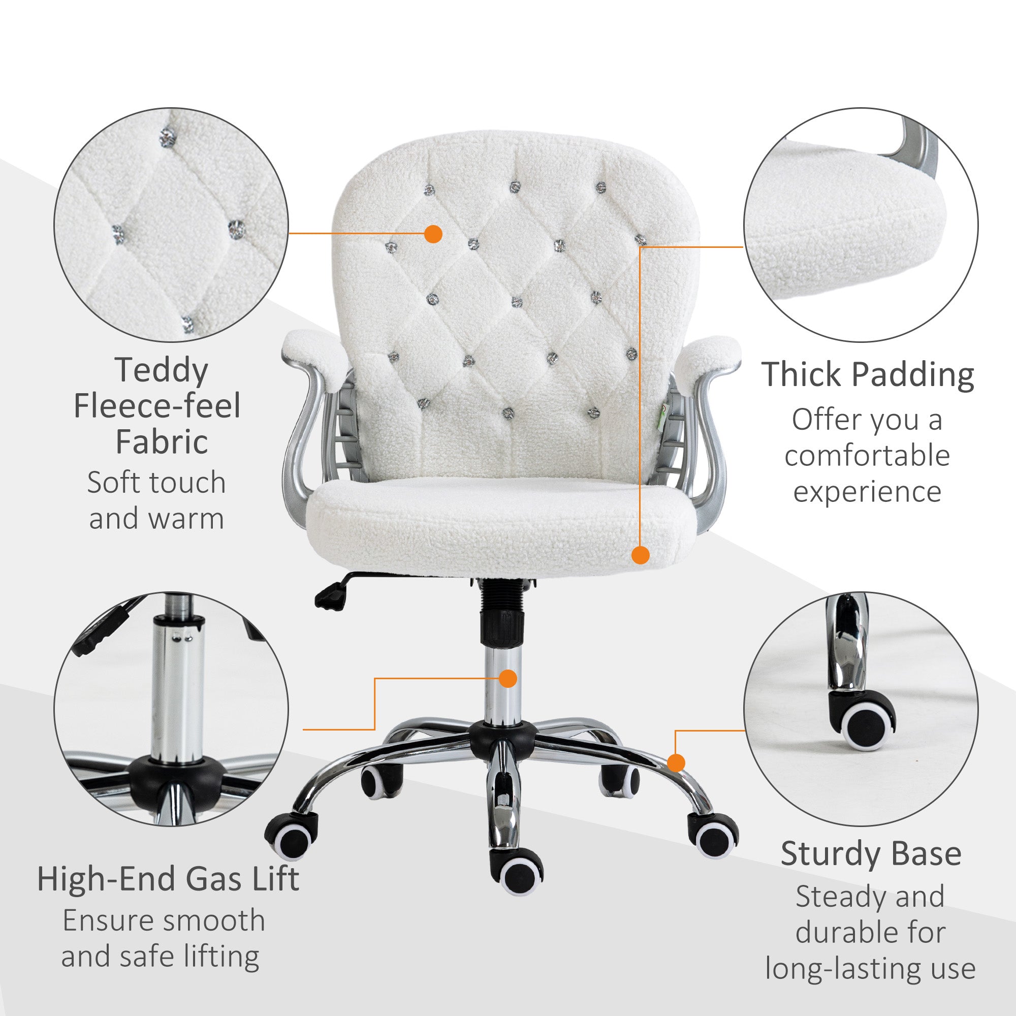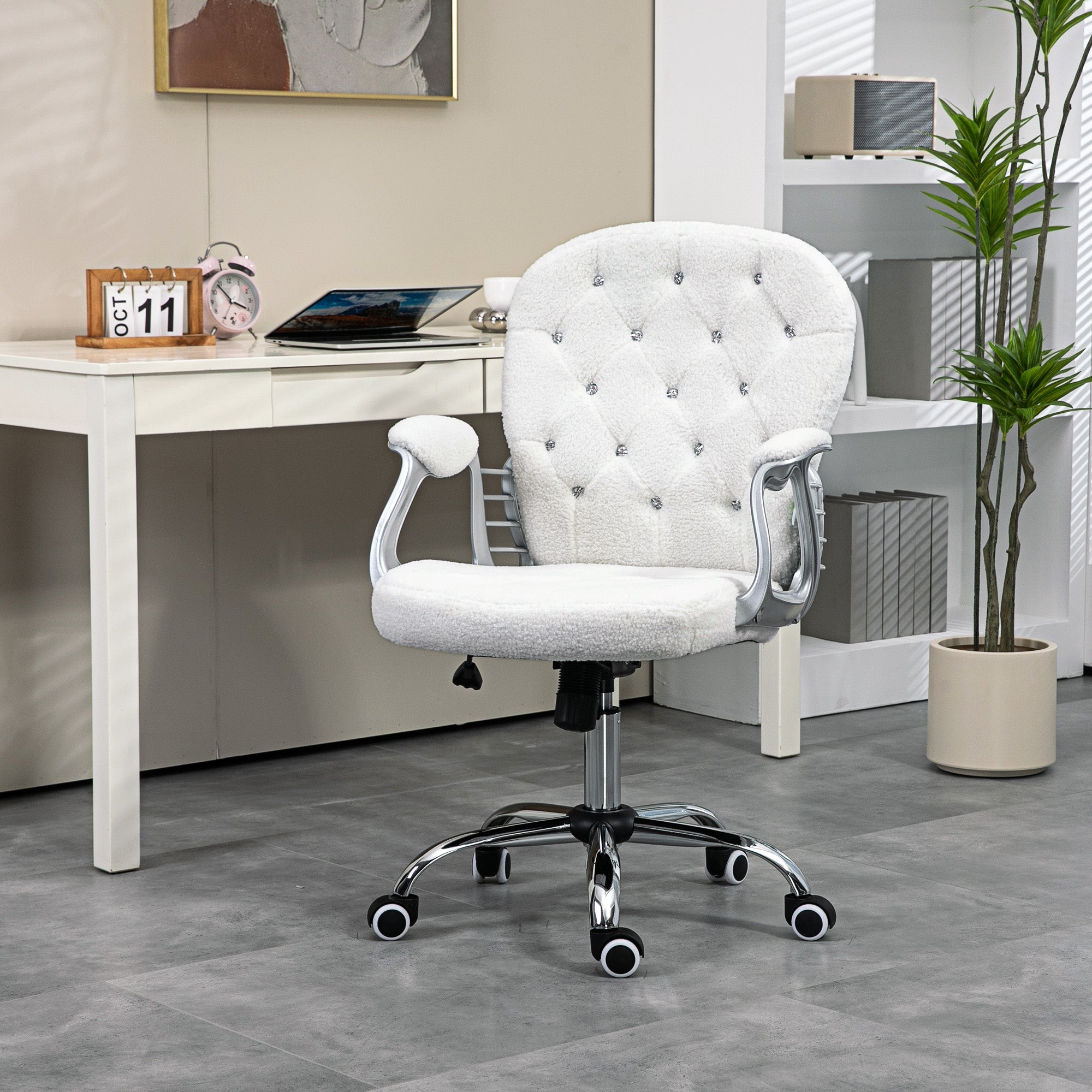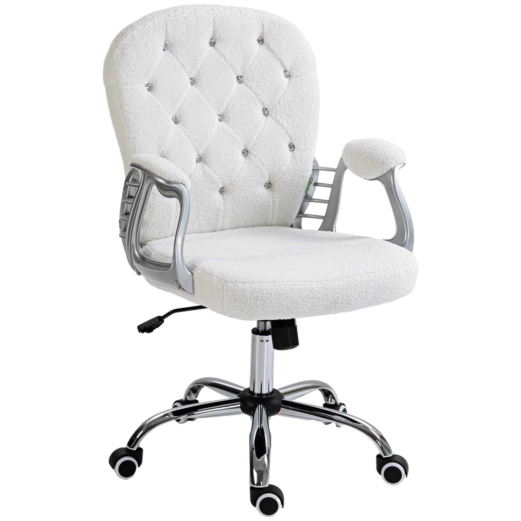 Comfort and design: Bring elegance and brightness to your workspace with this white faux leather upholstered office chair. Its backrest adorned with decorative crystals and its vibrant upholstery create a refined and timeless style. The thick padding of the backrest and seat provides optimal comfort for pleasant and productive workdays.