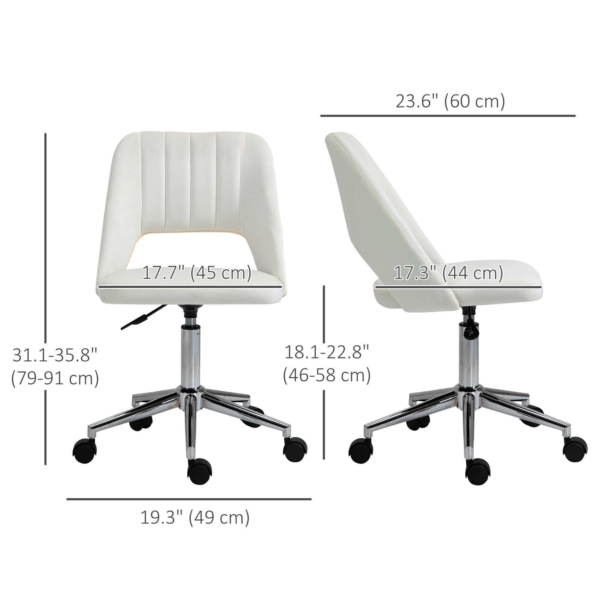 - Seat dimensions: 45 x 44 x 46-58 cm