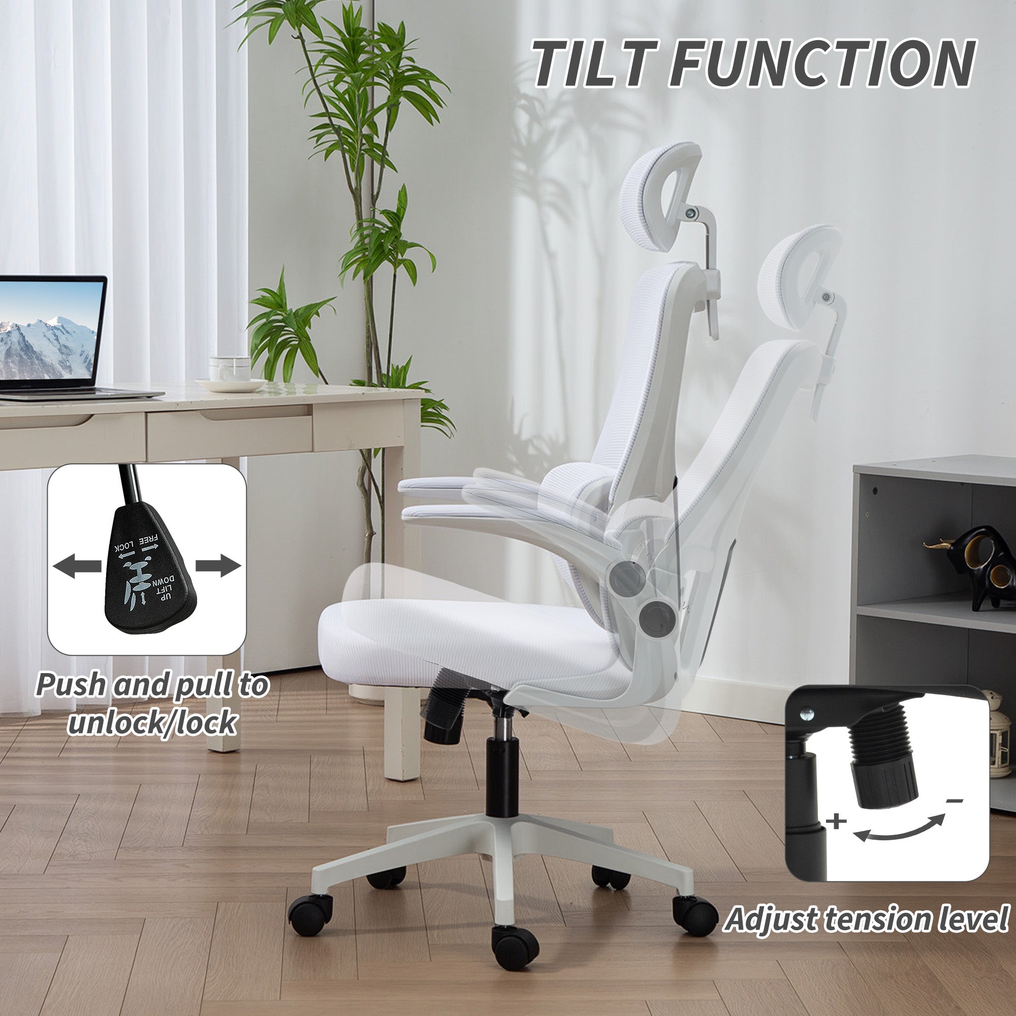 Ergonomic office chair in breathable mesh with adjustable headrest and tilt function – Cream white