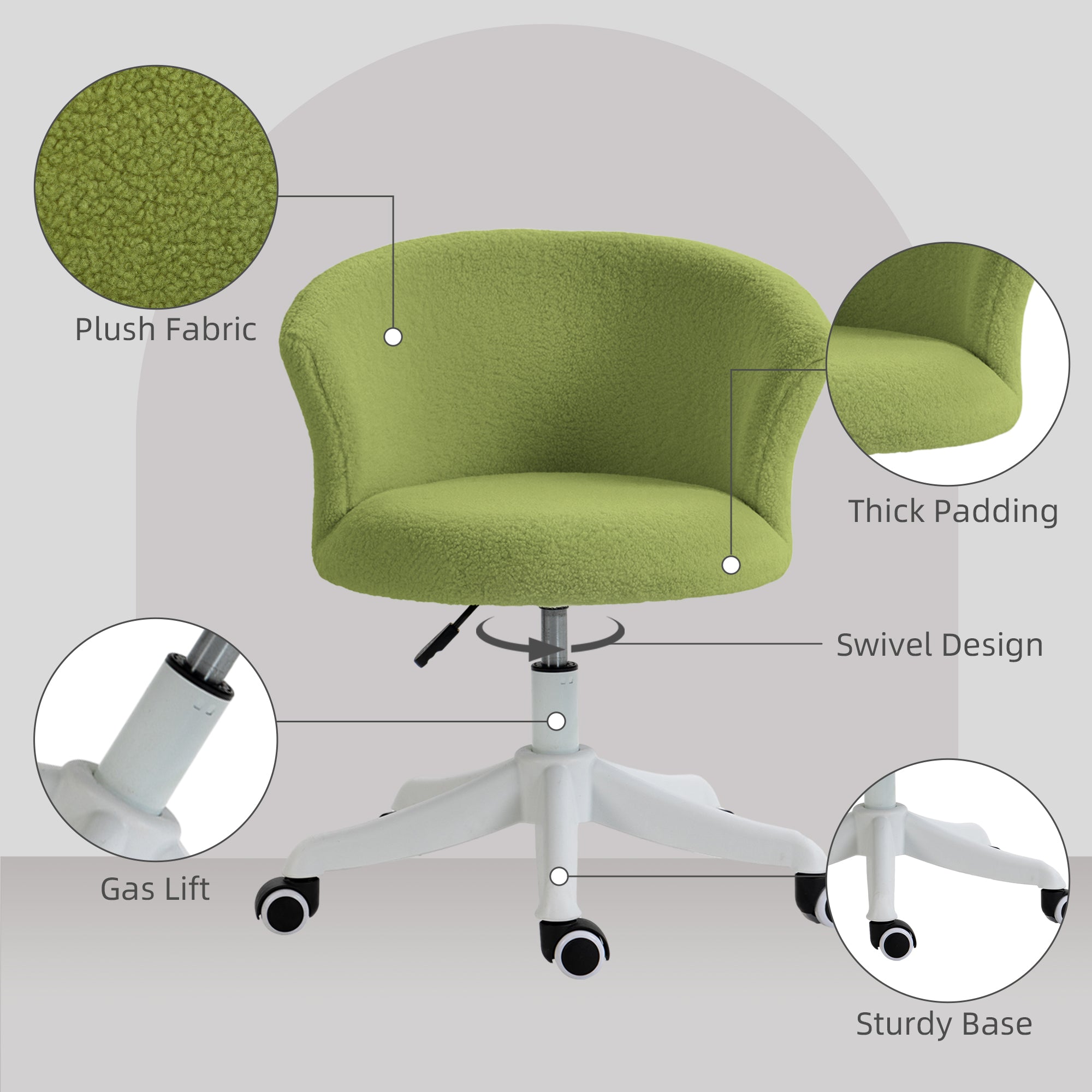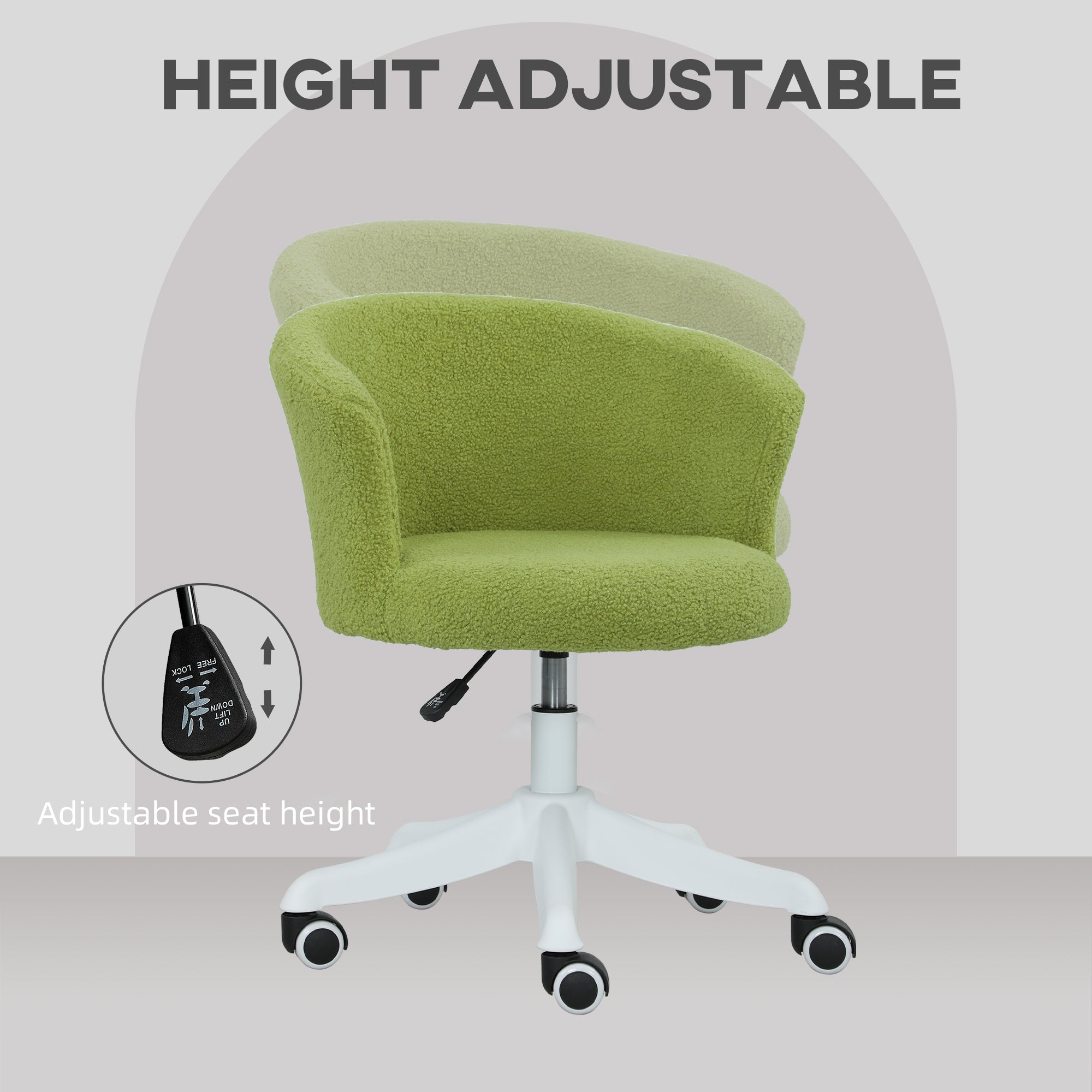 Soft Teddy Fleece Office Chair with Adjustable Seat – Green