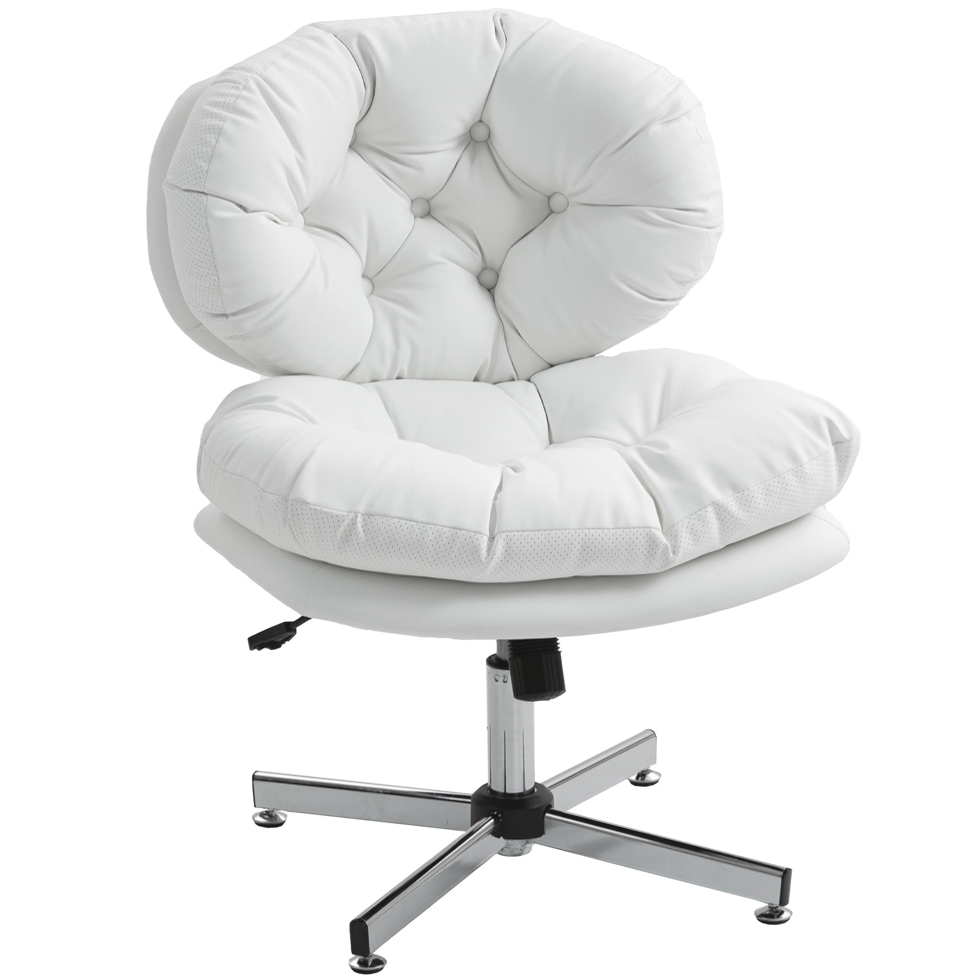 Comfort and design: Bring brightness and elegance to your workspace with this upholstered office chair in white linen-effect fabric. Its curved backrest adorned with tufted buttons gives it a refined style, while its thick foam padding ensures optimal comfort, ideal for long hours spent at the office or studying.