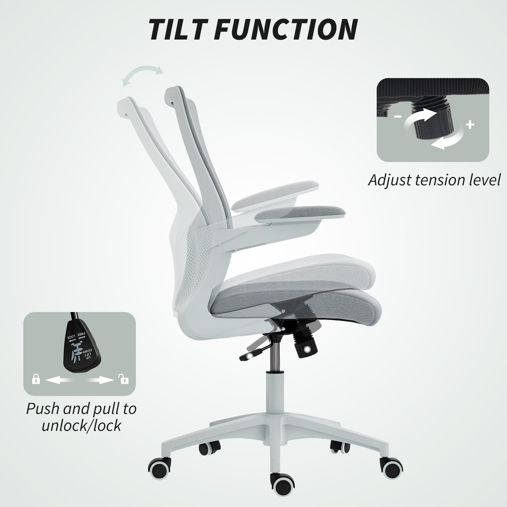 Versatile use: Designed for the office or remote work, this chair adapts to your needs thanks to its 90° flip-up armrests, freeing up space under your desk. Its smooth 360° swivel and quiet casters ensure effortless mobility on all types of flooring.