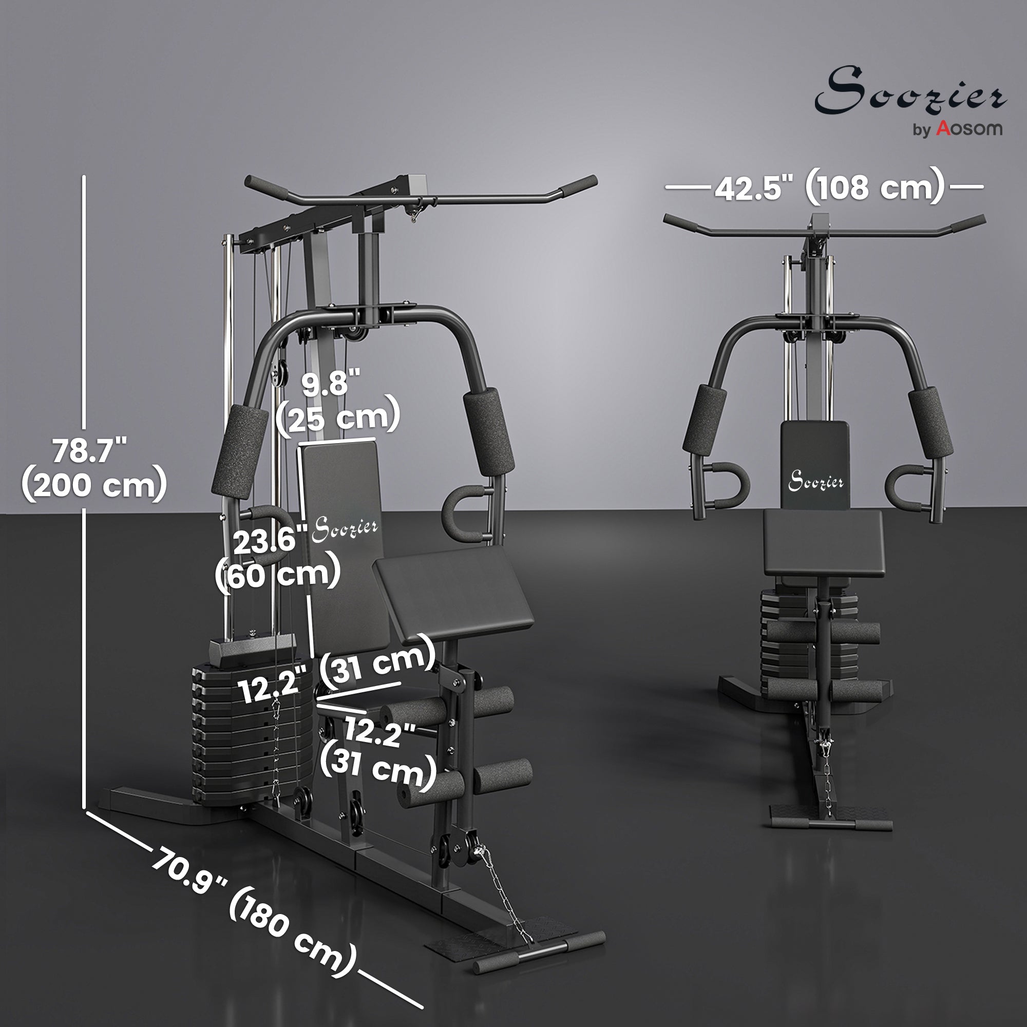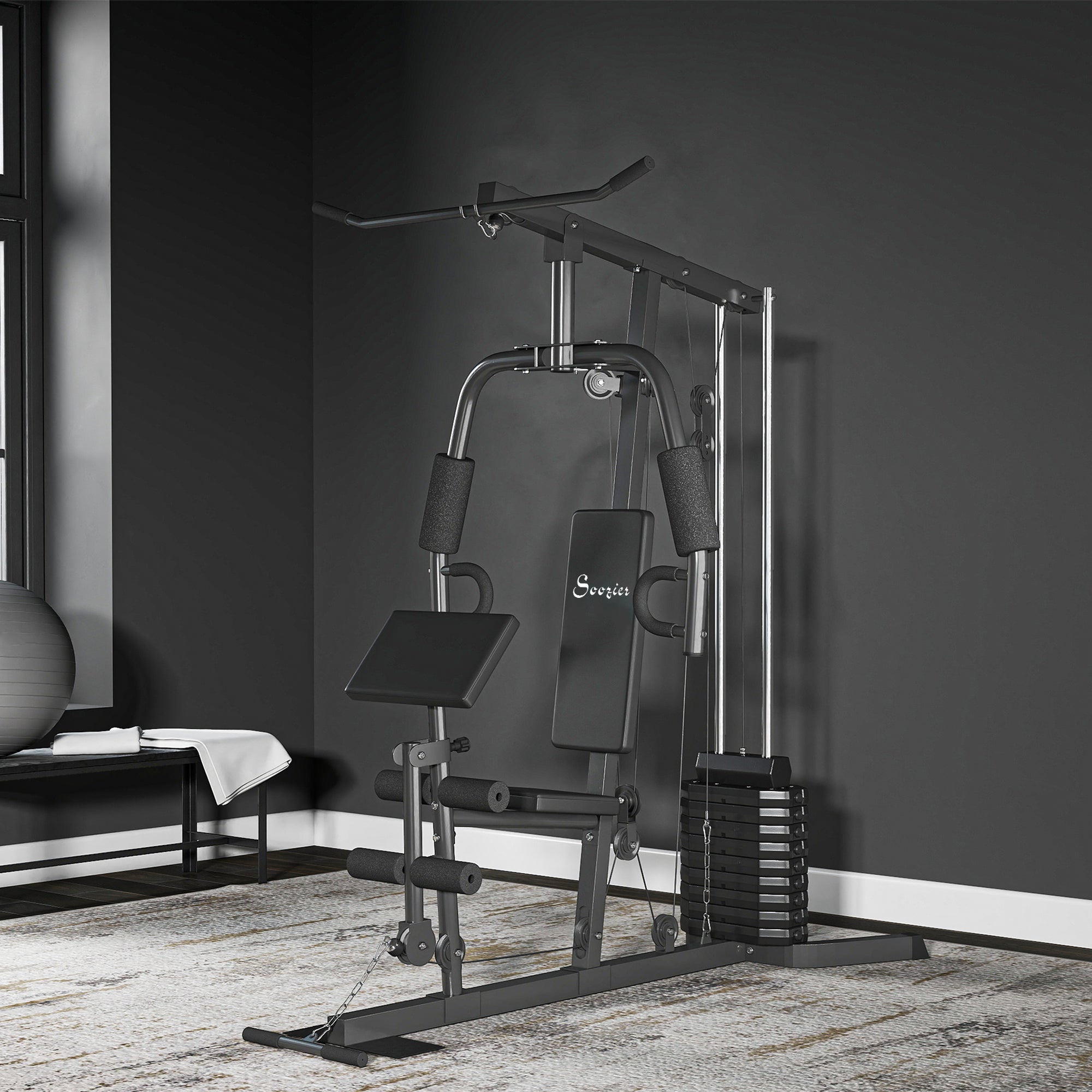 - Contains: strength training station, integrated weight stack, accessories, hardware, user manual