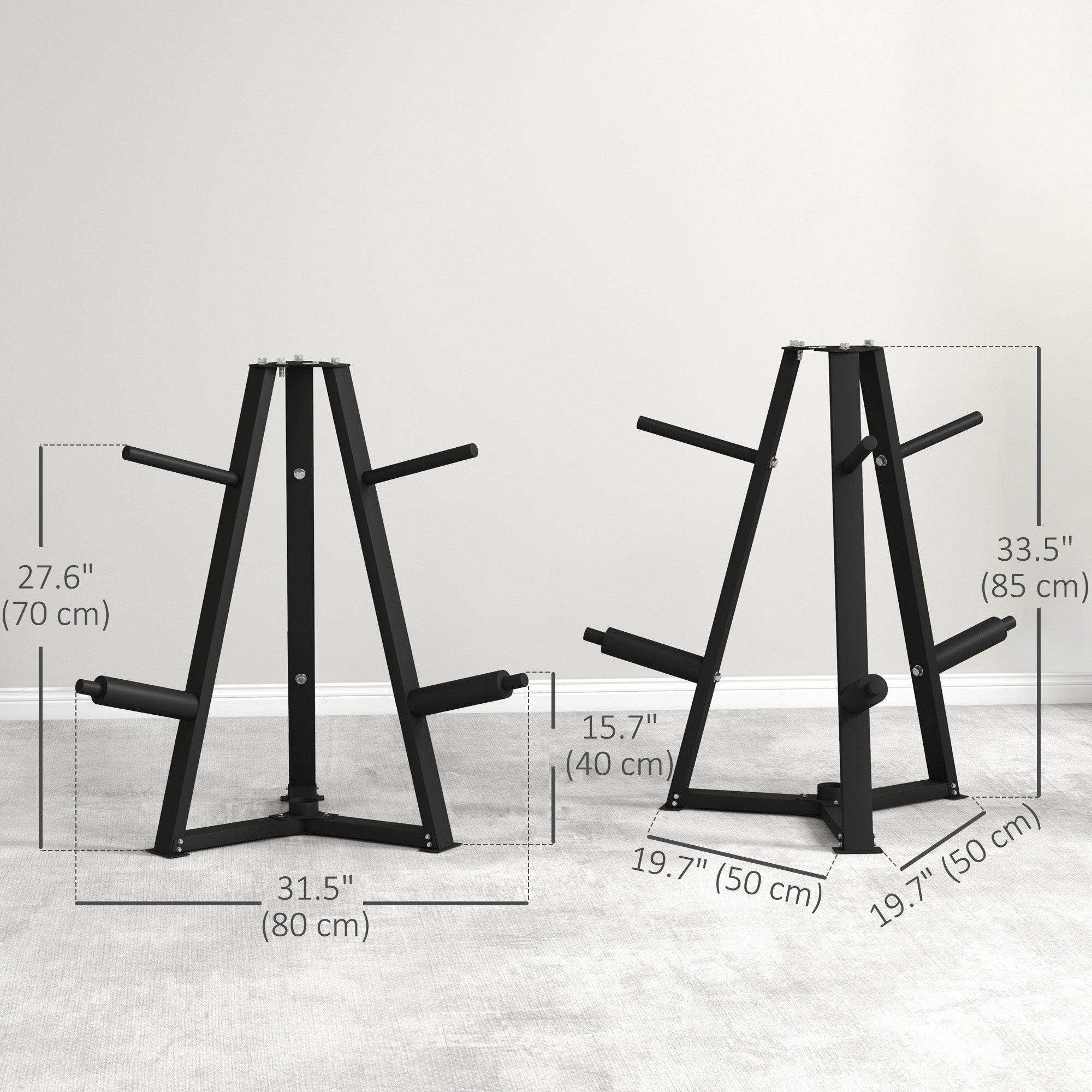 Versatile Organizer : Equipped with three posts for 5 cm (2") center hole plates and three posts for 2.5 cm (1") plates, as well as a dumbbell holder for diameters less than 5 cm (2"). This weight plate storage helps keep your gym organized.