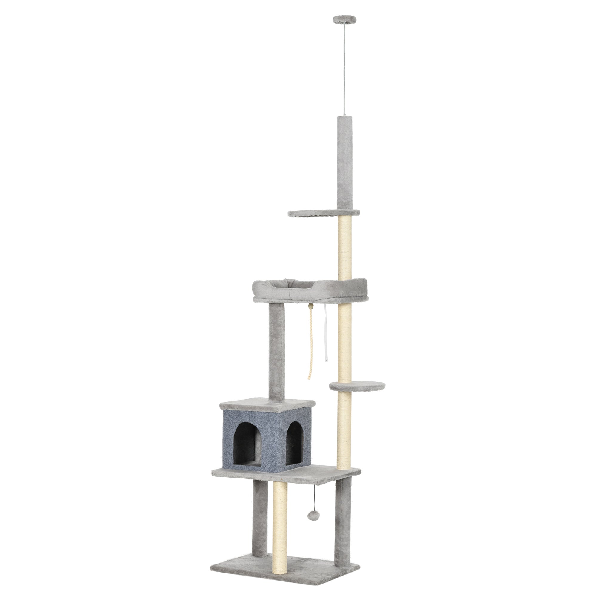 Comfort and design: Give your felines a true vertical kingdom with this floor-to-ceiling gray cat tree. Its sleek, modern structure blends seamlessly into your home, while providing your cats with a space to relax and explore. Entirely covered in soft plush, it provides optimal comfort for naps and playtime.