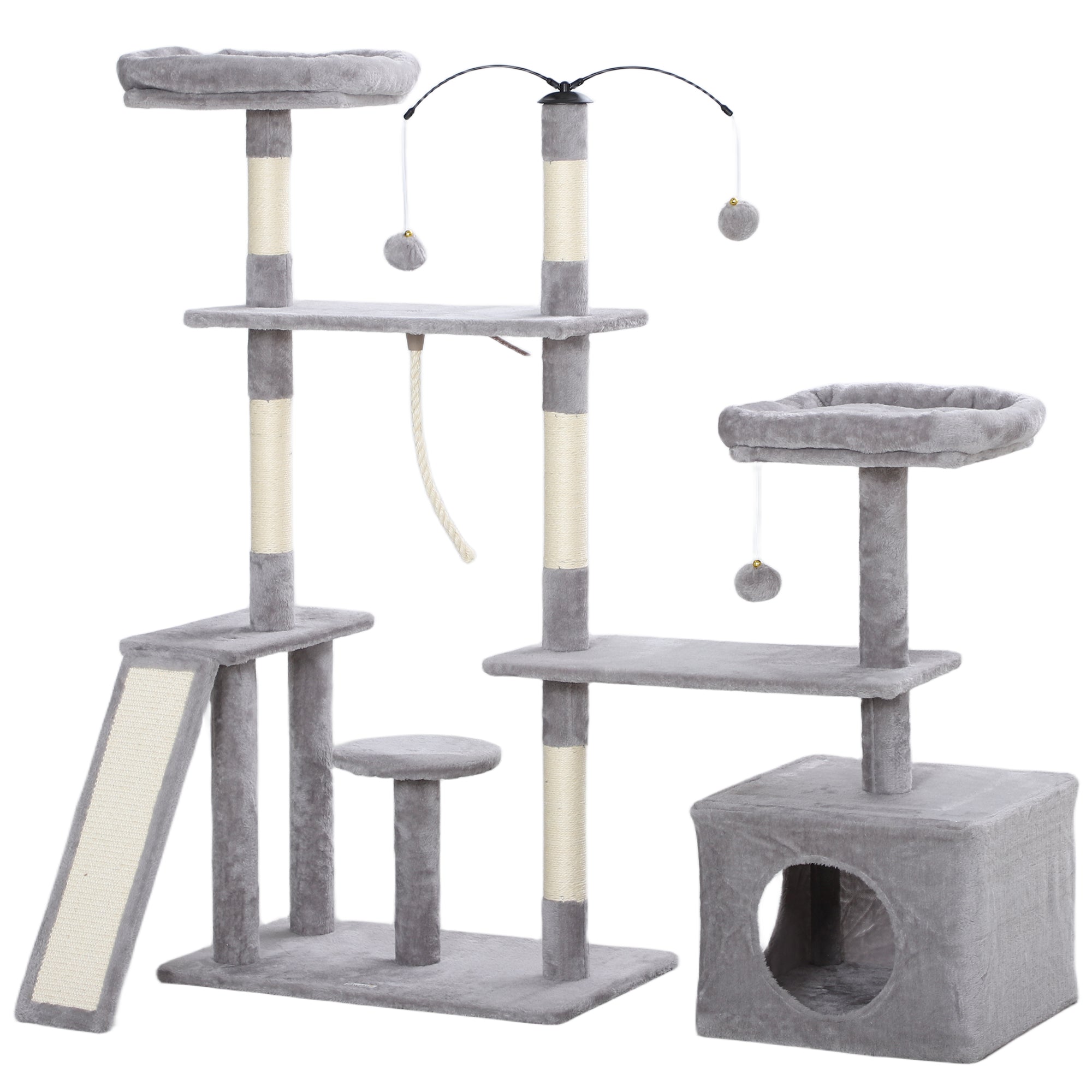Versatile Use: With two cozy beds, an enclosed area, multiple platforms, and interactive toys, this tree provides your cat with the perfect place to relax and exercise. The built-in scratching posts and ramp appeal to their natural instincts, promoting their physical and mental well-being.