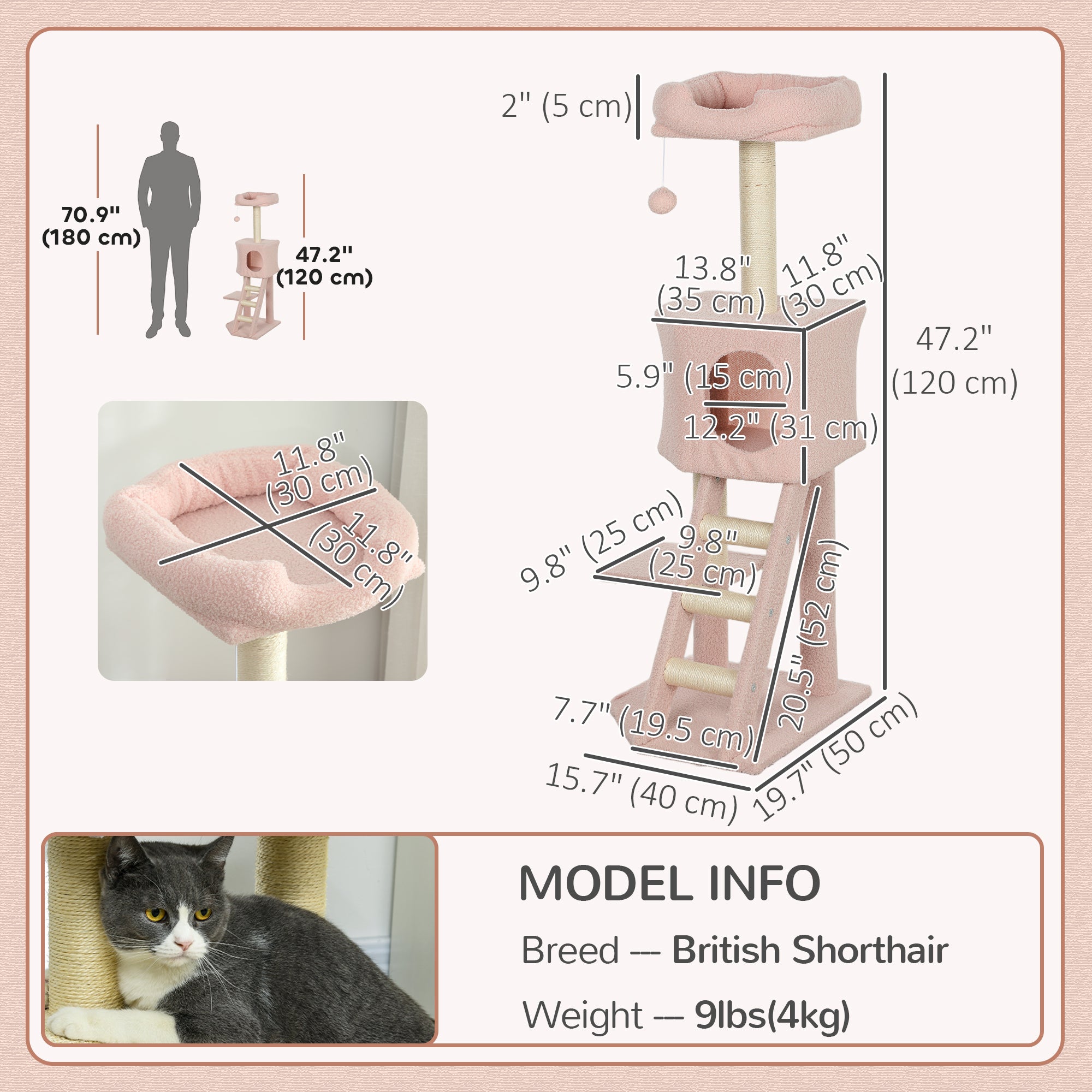 - Contains: 1 cat tree, 1 instruction manual