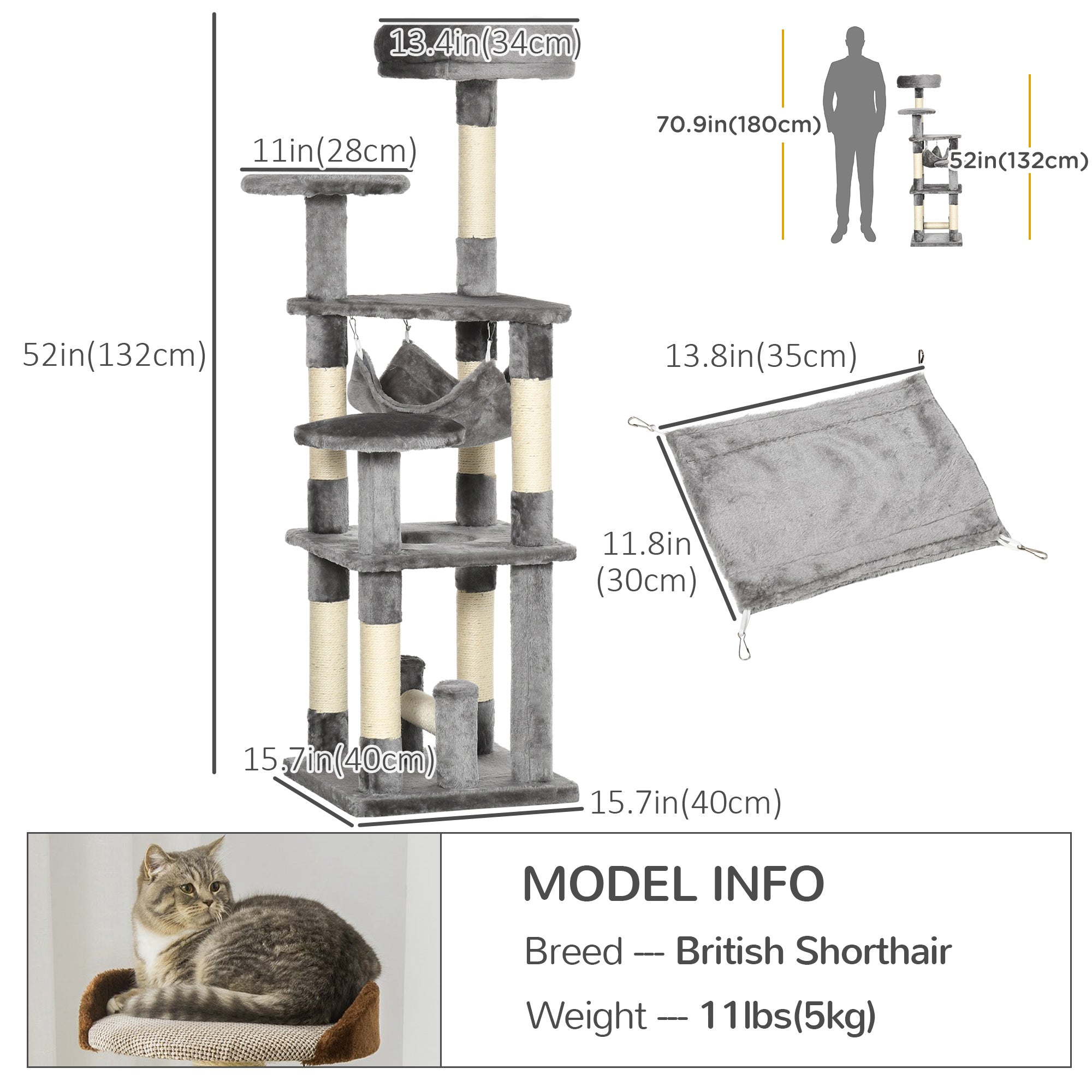 Grey cat tree: multi-level tower for climbing, playing and relaxing