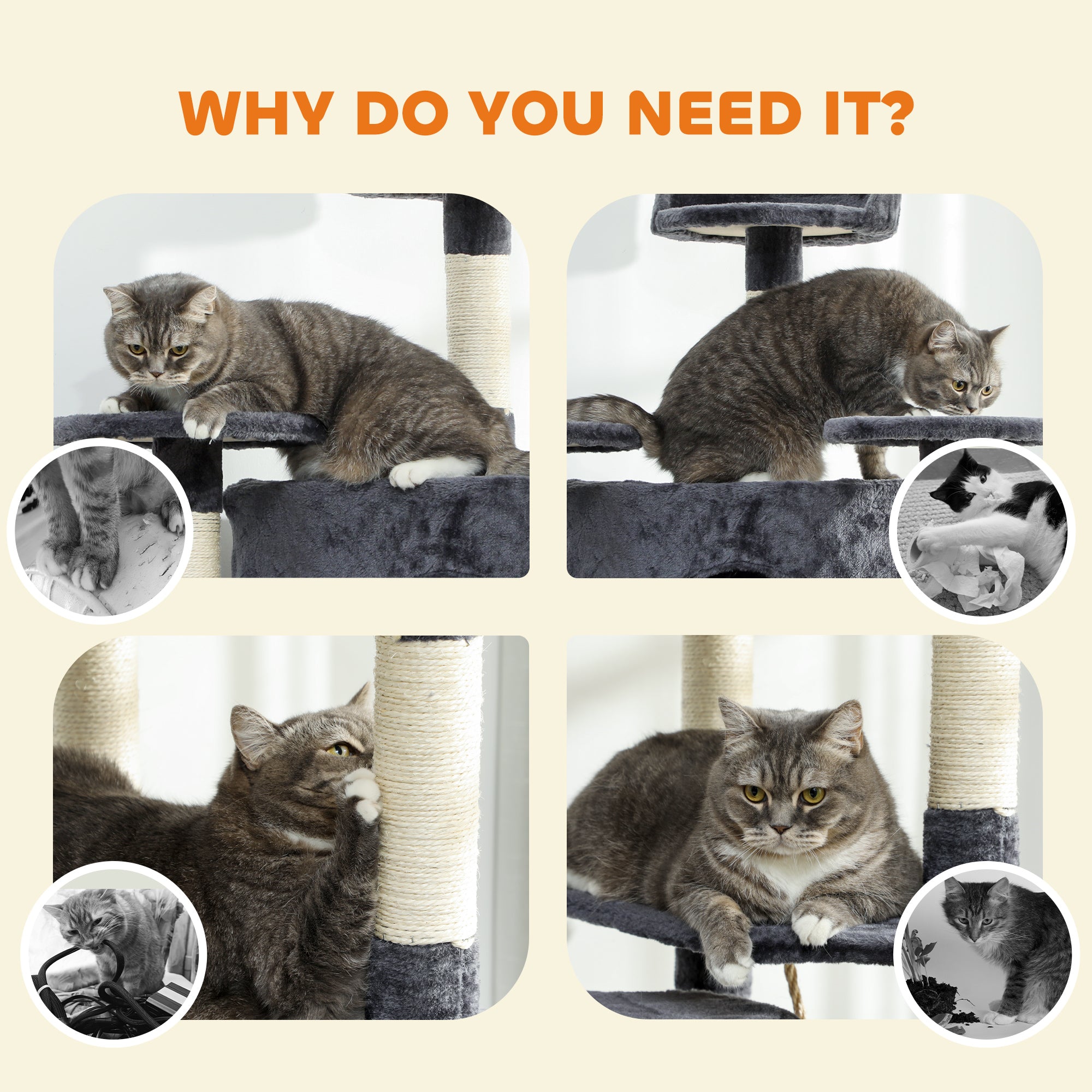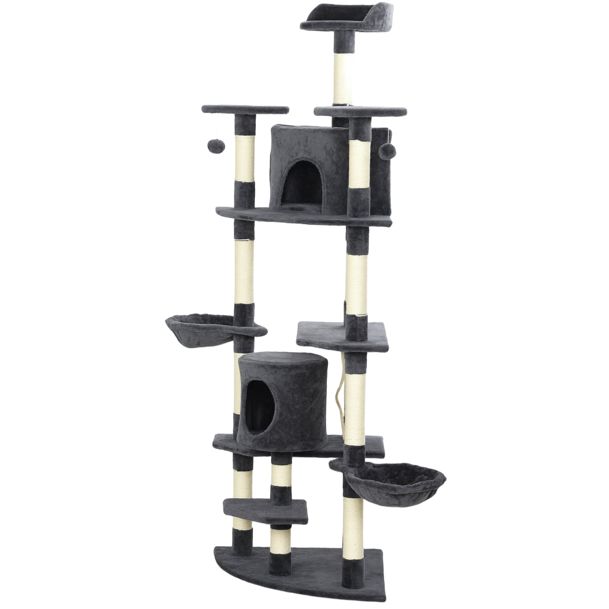 Large Dark Grey Cat Tree – Multi-Level Tower with Hammocks, Condos, Scratching Posts & Toys