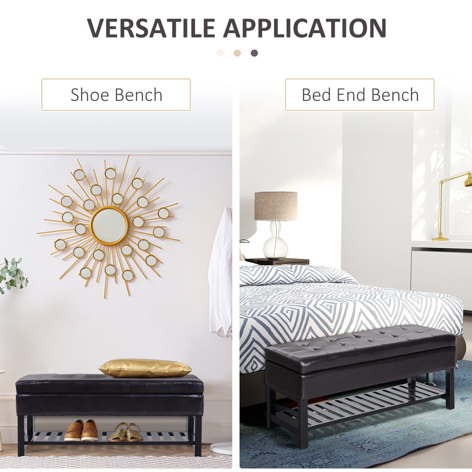 Brown Faux Leather Upholstered Entryway Bench - Built-in Storage & Shoe Rack