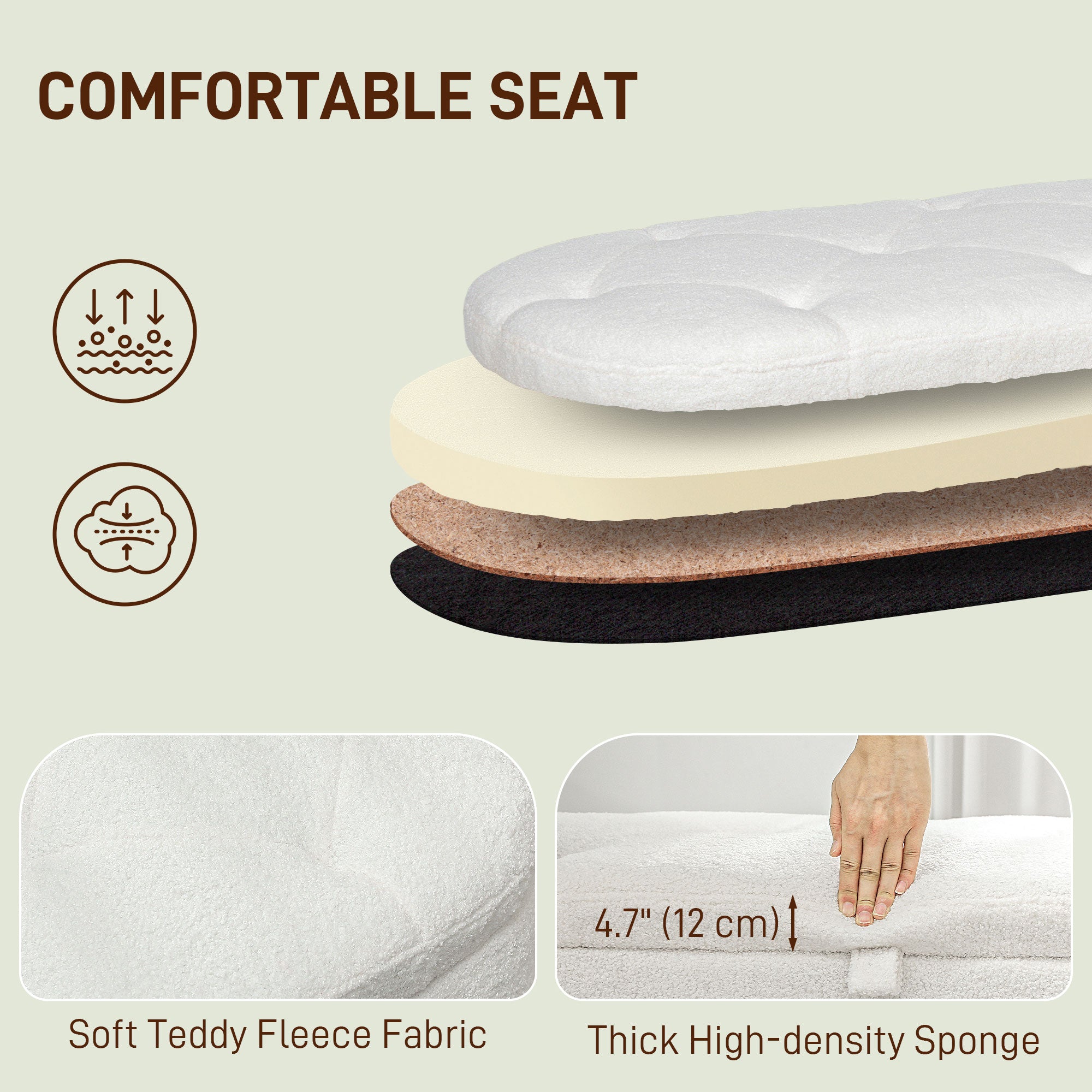- Materials: Teddy fleece (100% polyester), rubberwood, high-density foam