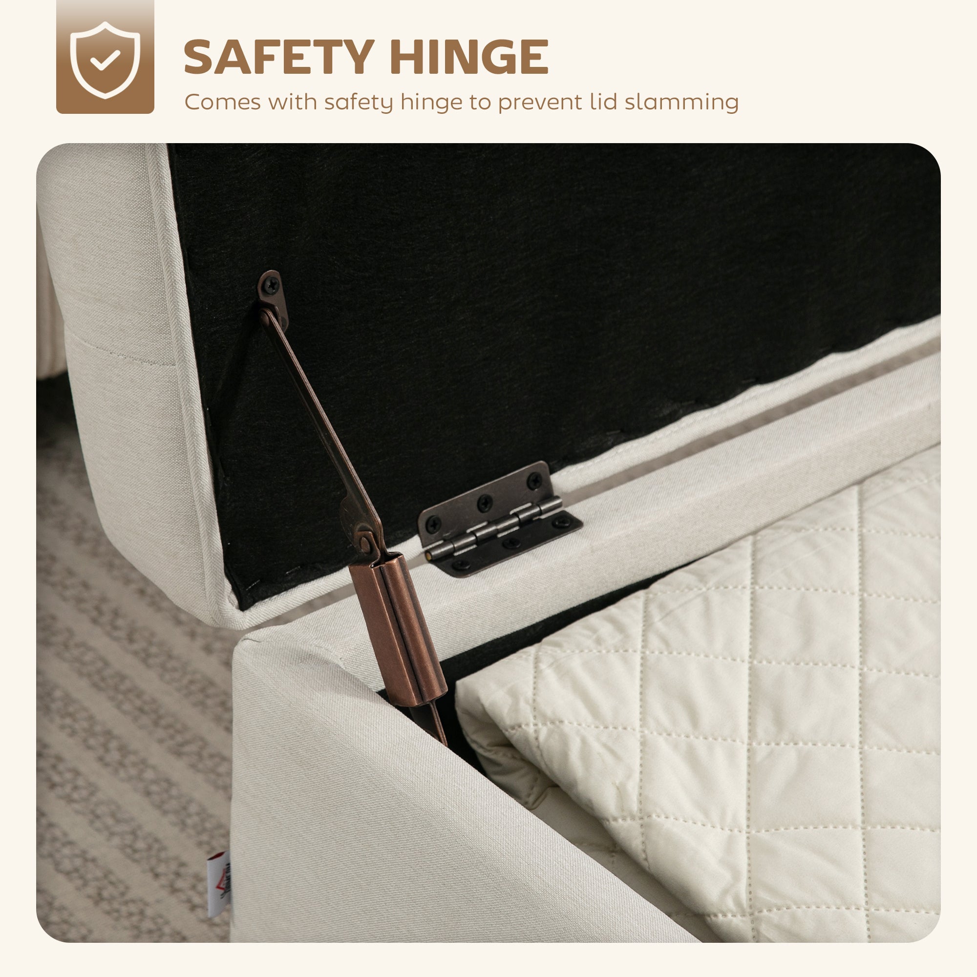 Beige fabric storage pouf – Padded seat and solid wood frame