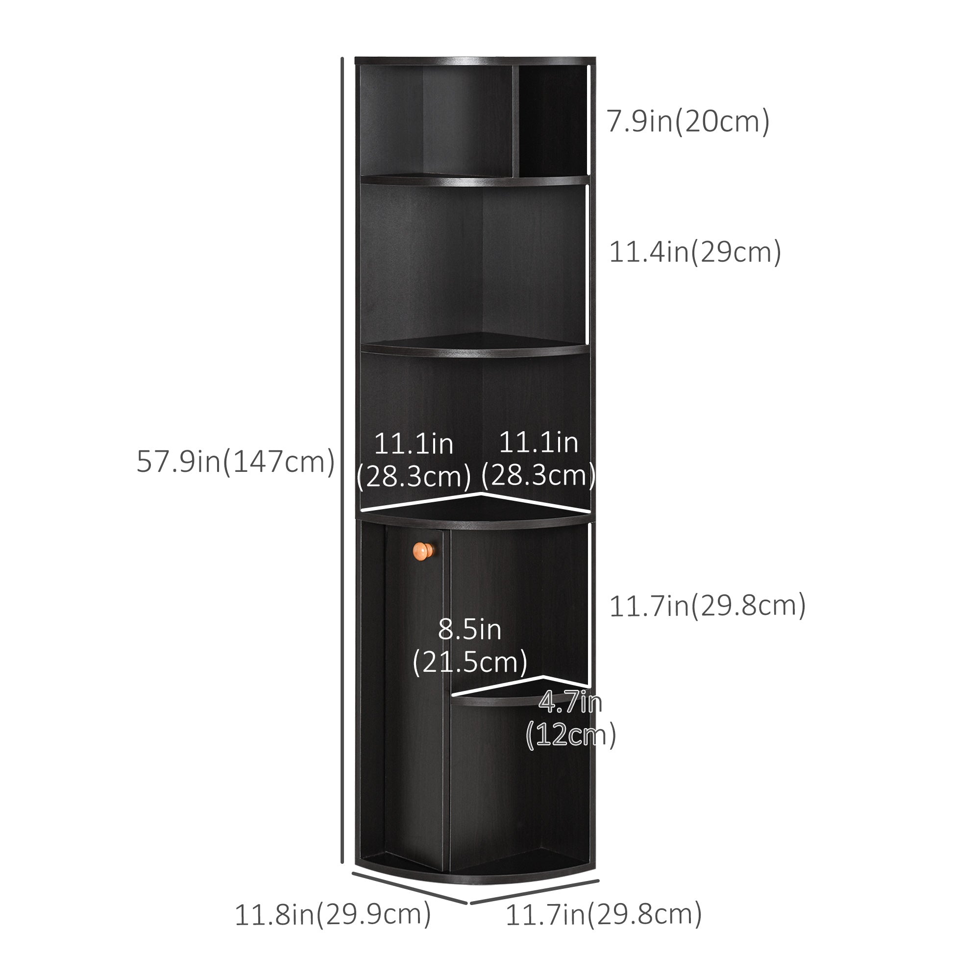 - Overall dimensions: 30 x 30 x 147 cm (11.75 in. W x 11.75 in. D x 57.75 in. H)
