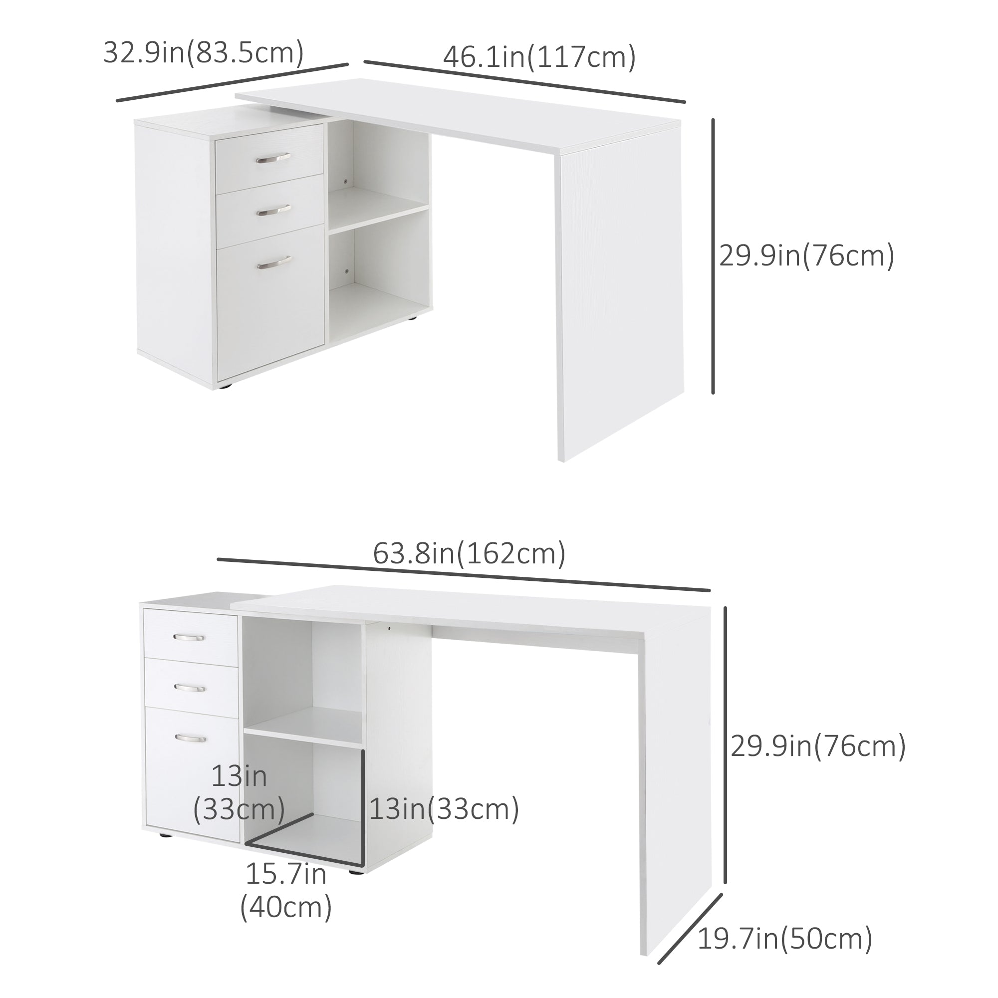 - Overall Dimensions (L-Shaped): 117 x 83.2 x 76.2 cm (46 in L x 32.75 in W x 30 in H)
