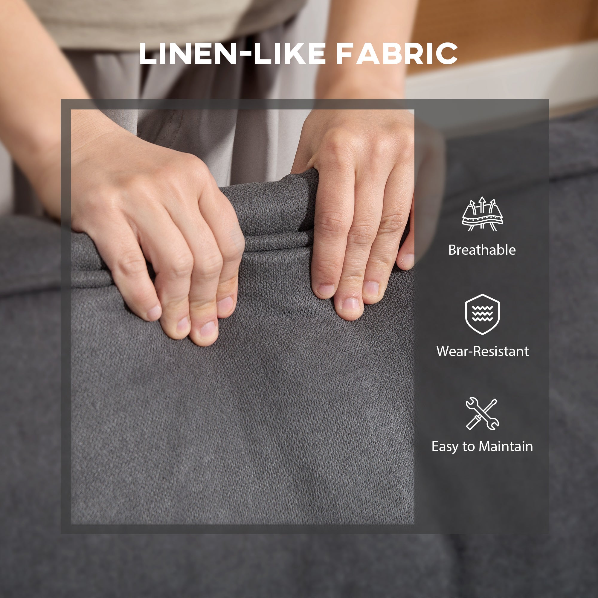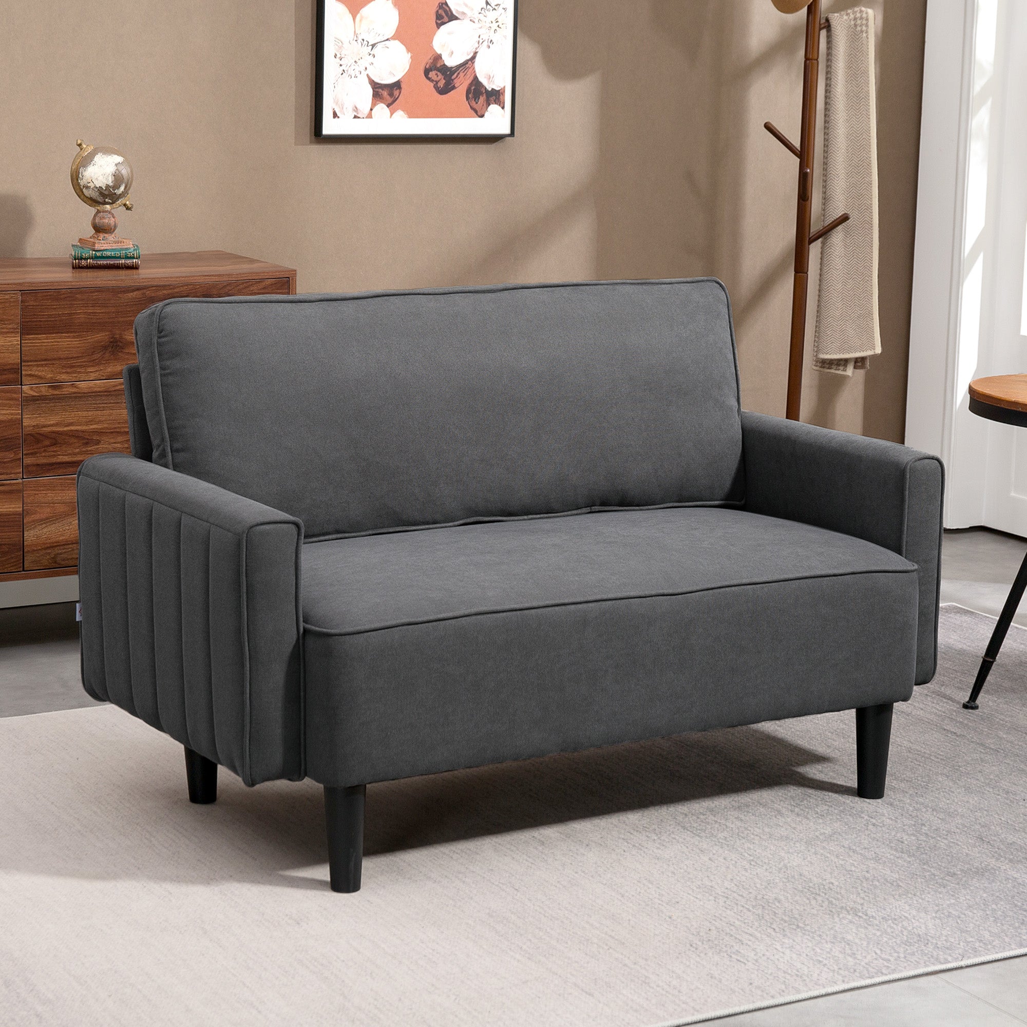 A modern and elegant design: Transform your living space with this sleek loveseat. Its simple lines and dark gray linen-effect fabric upholstery complement any interior decor.