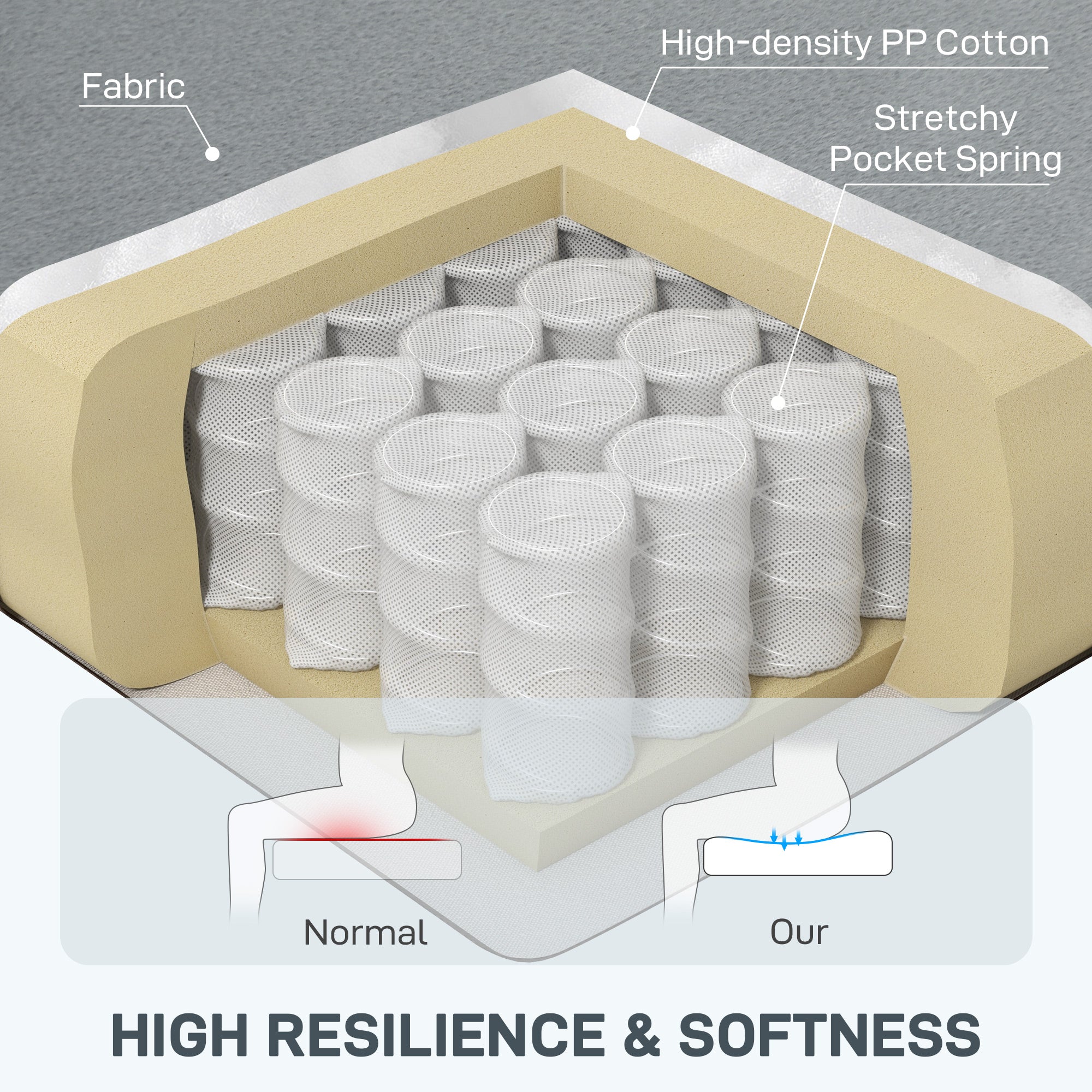 - Seat thickness: 16 cm (6.3")