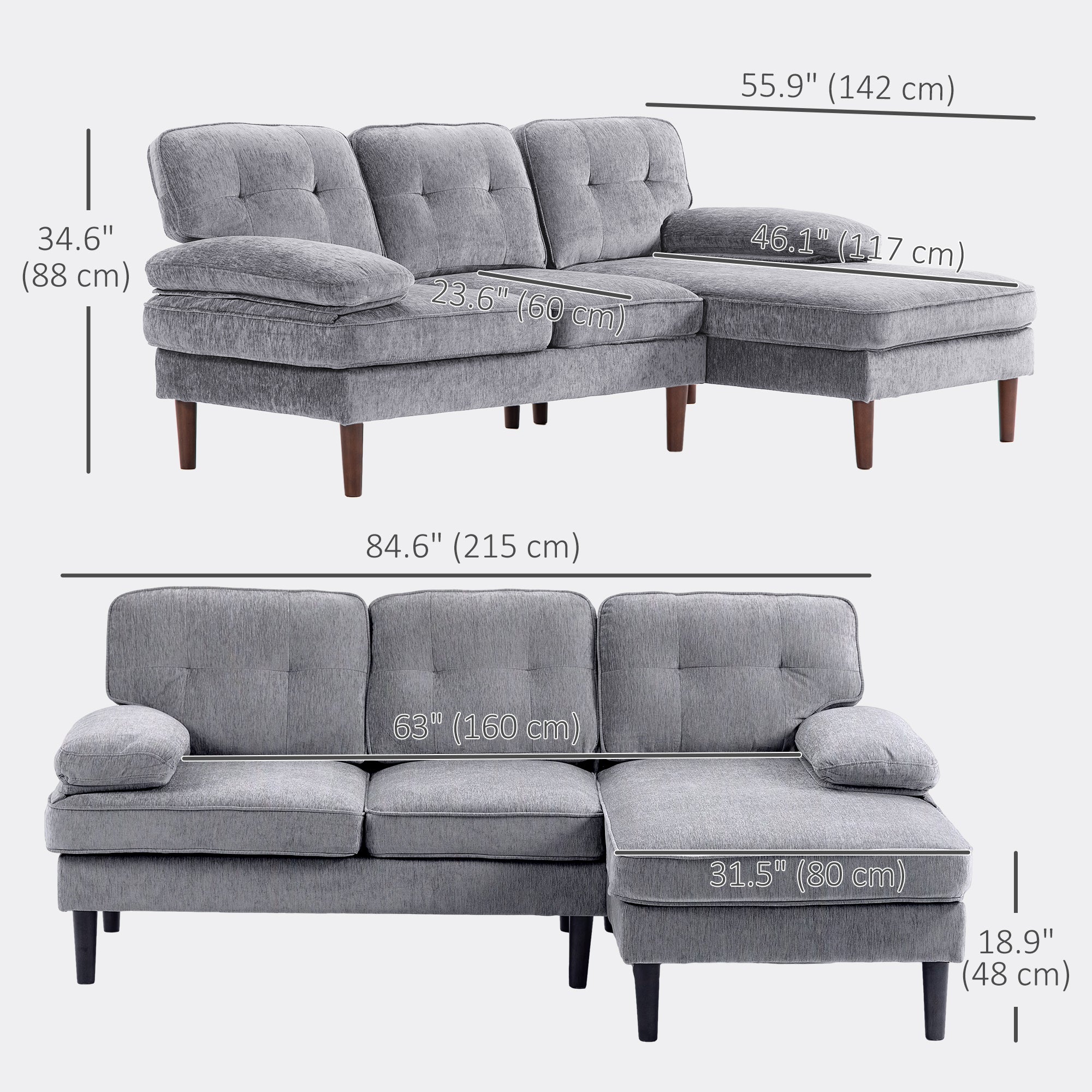 - Sofa Seat Dimensions: 160 x 60 x 48 cm (63" W x 23.6" D x 18.9" H)