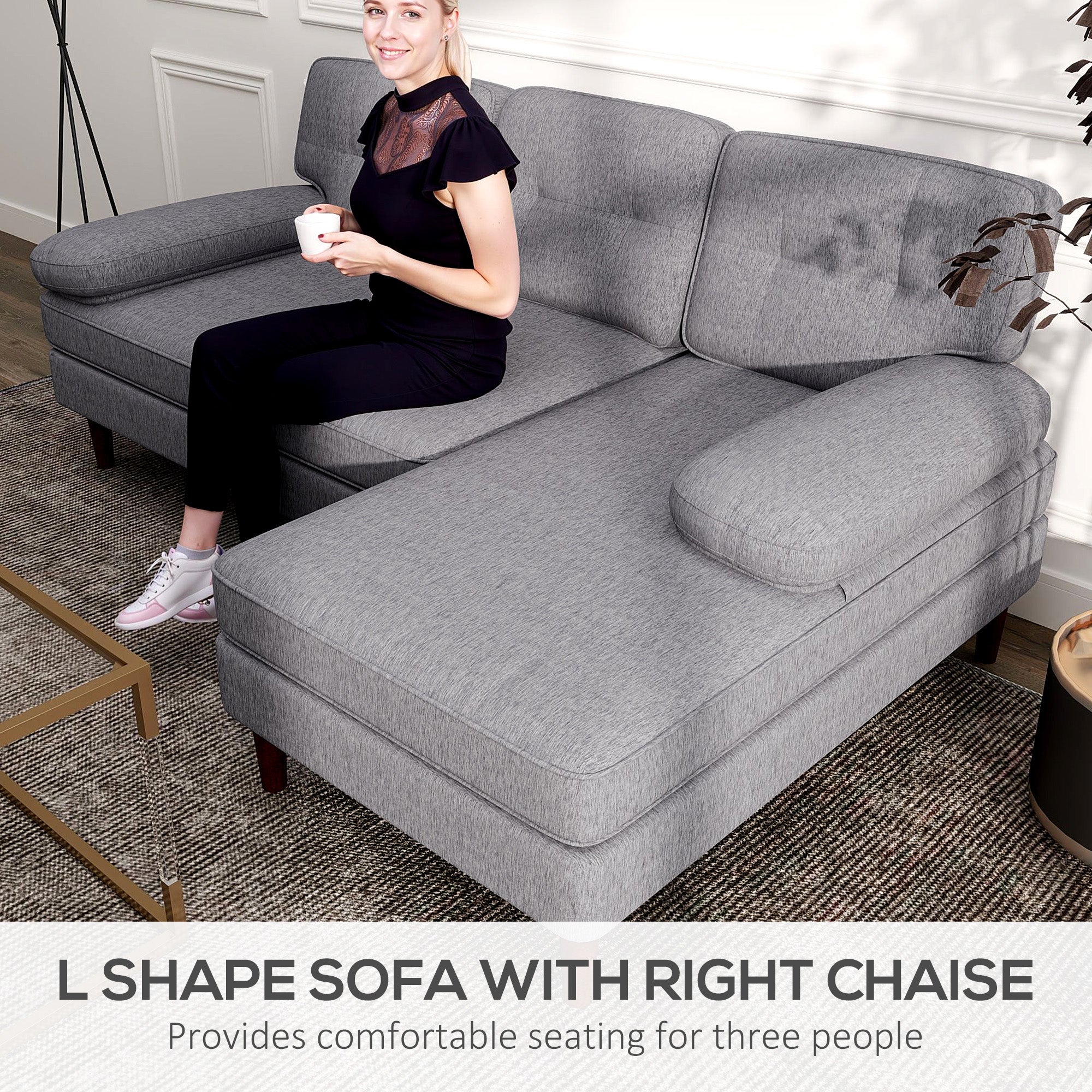 - Includes: 1 L-shaped sofa, 1 manual
