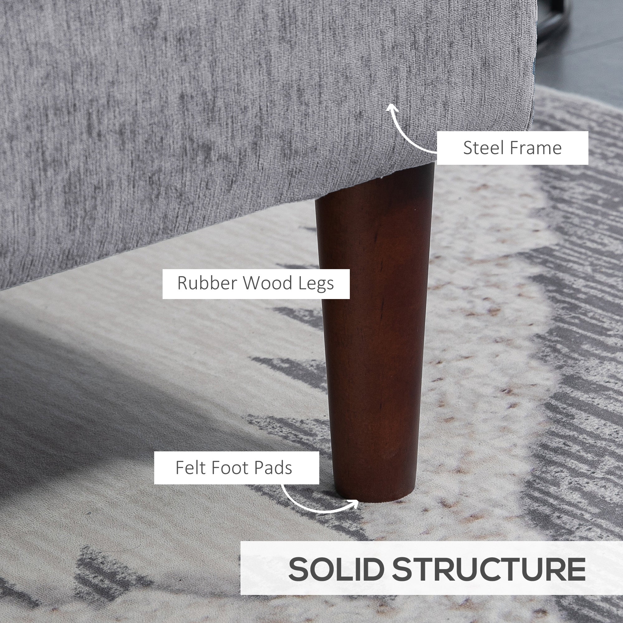 Sturdy Structure: Constructed with a sturdy steel frame and rubberwood legs, this sofa guarantees stability and longevity. Felt glides effectively protect your floors from scratches.