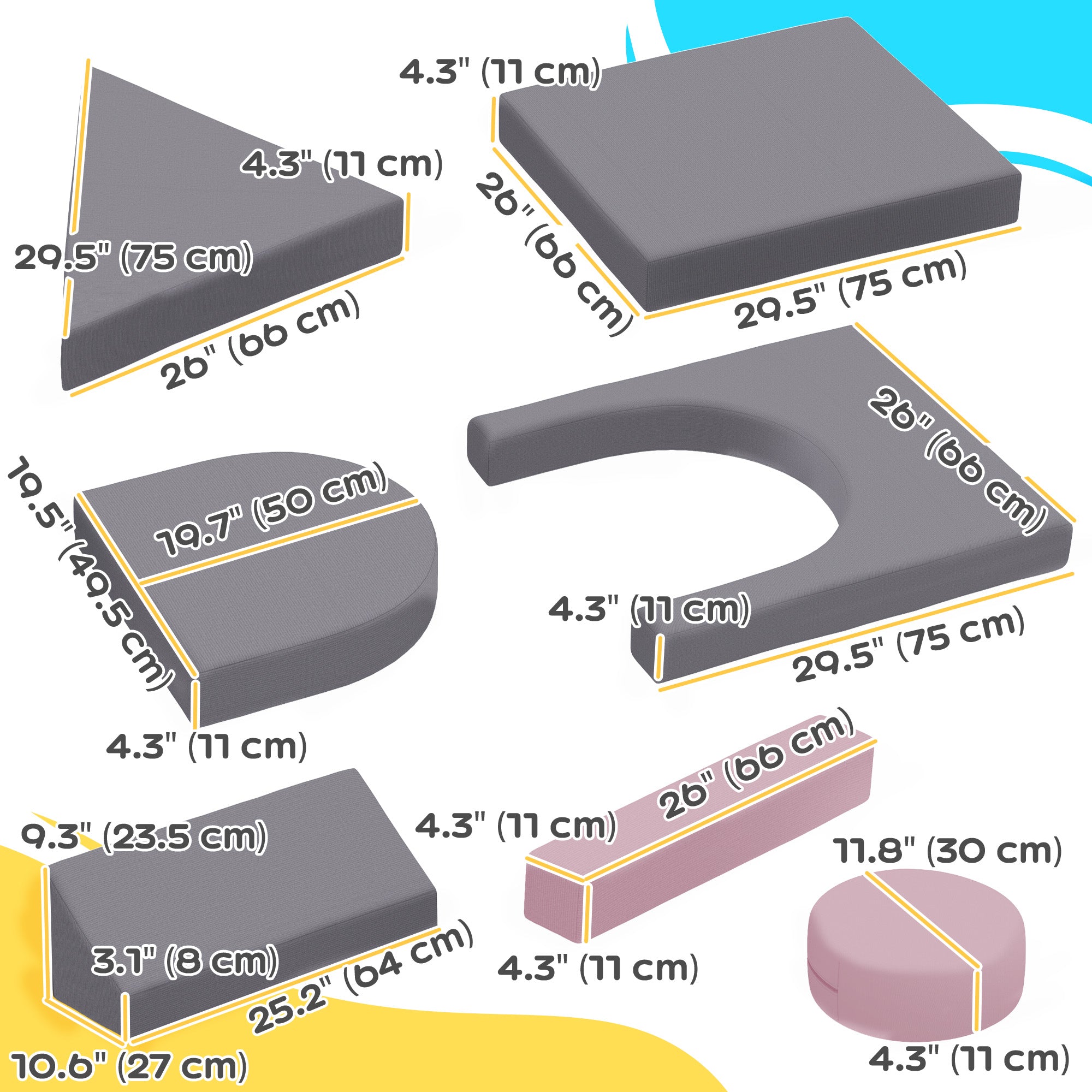 - Contains: 12 foam cushions