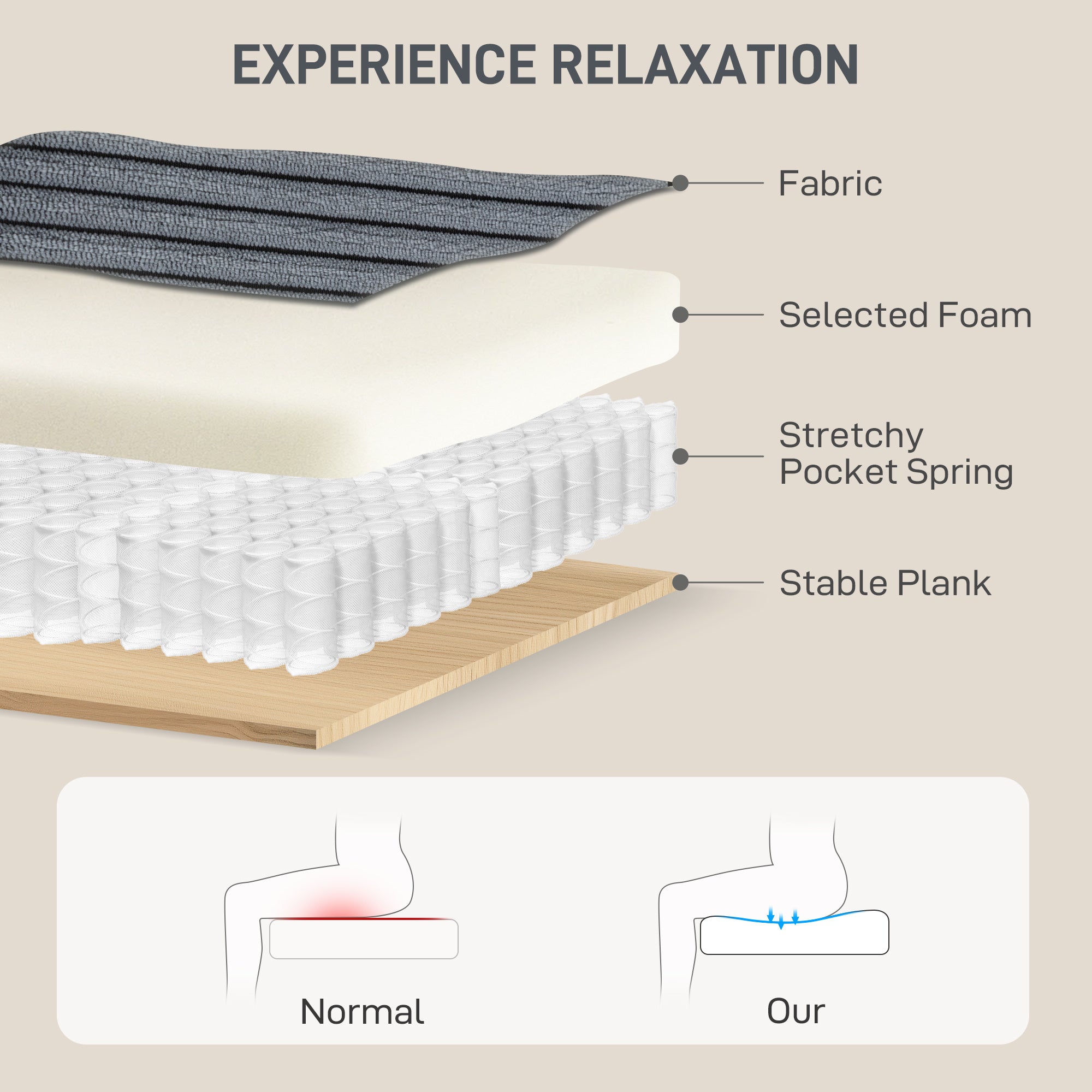 - Seat thickness: 25 cm (9.8 in)