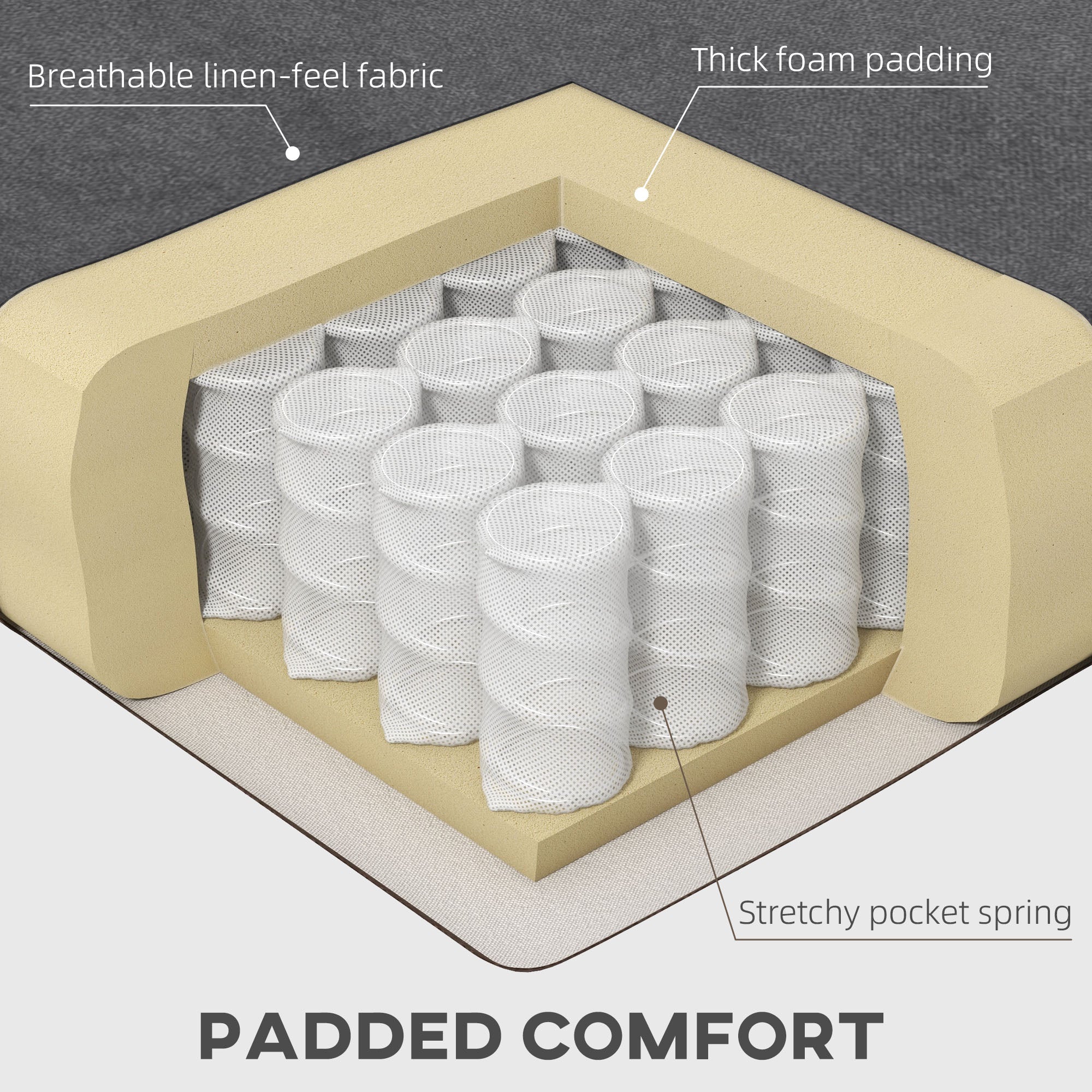 Modern and elegant design: Its soft and breathable charcoal gray linen fabric upholstery blends perfectly with a contemporary interior. Its button-tufted finishes add a refined aesthetic touch.
