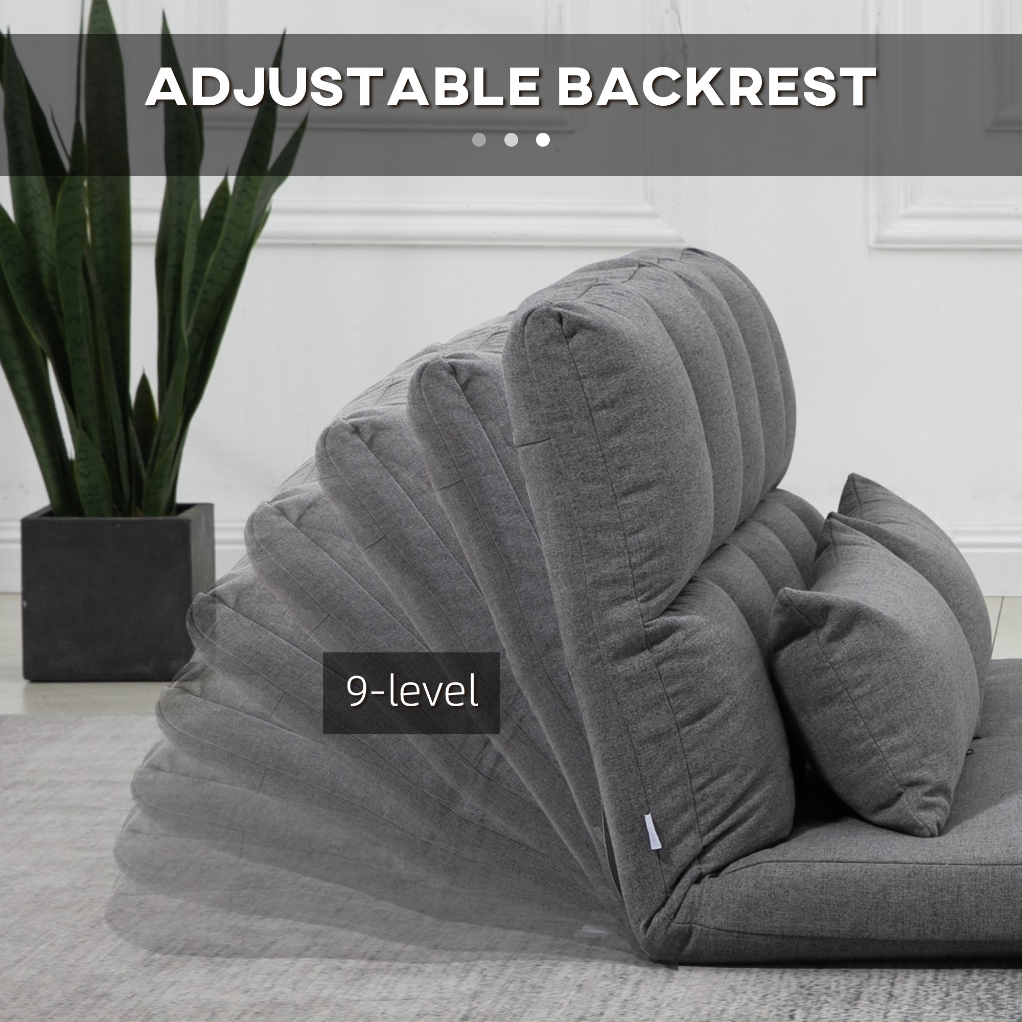 Grey linen fabric gaming floor sofa with adjustable backrest