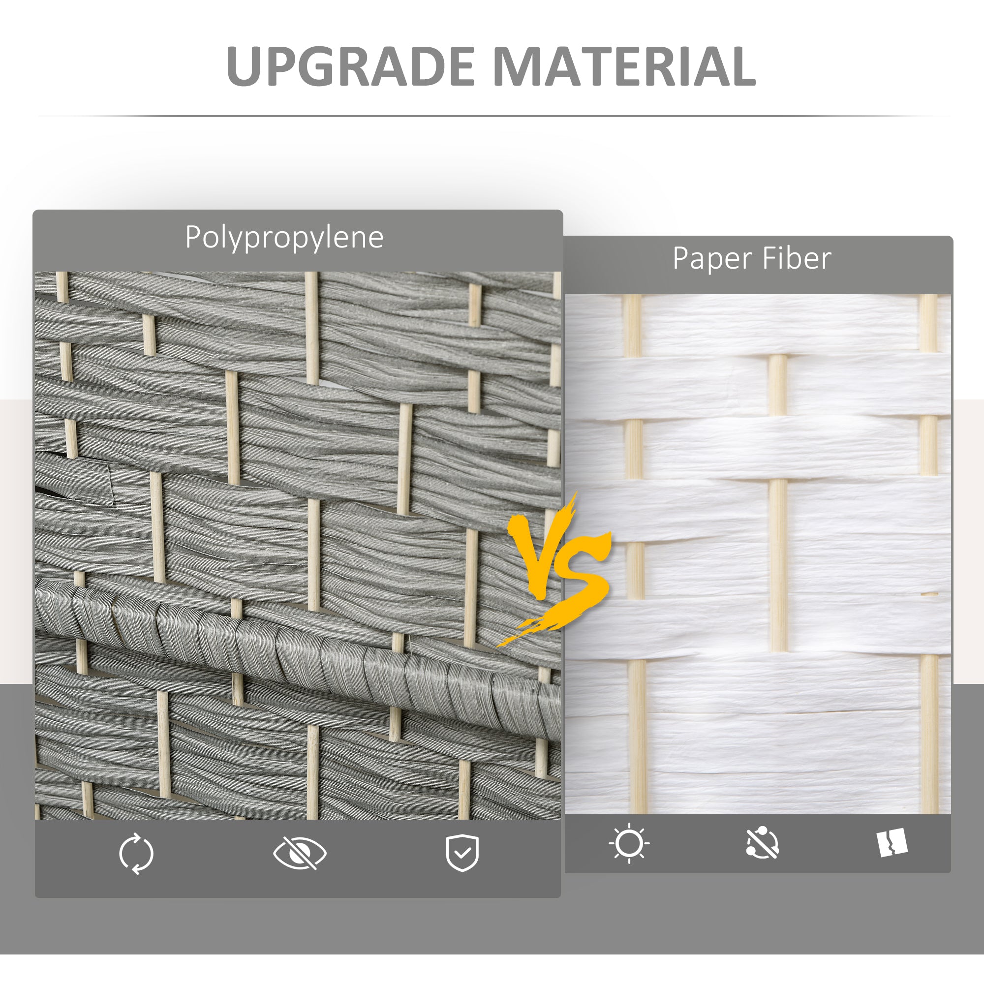 Transform your space in style: this room divider combines modernity, durability, and refinement to provide a practical and decorative privacy solution. Made from woven polypropylene, it offers superior strength to traditional paper, while ensuring ideal opacity to preserve your privacy in any room.