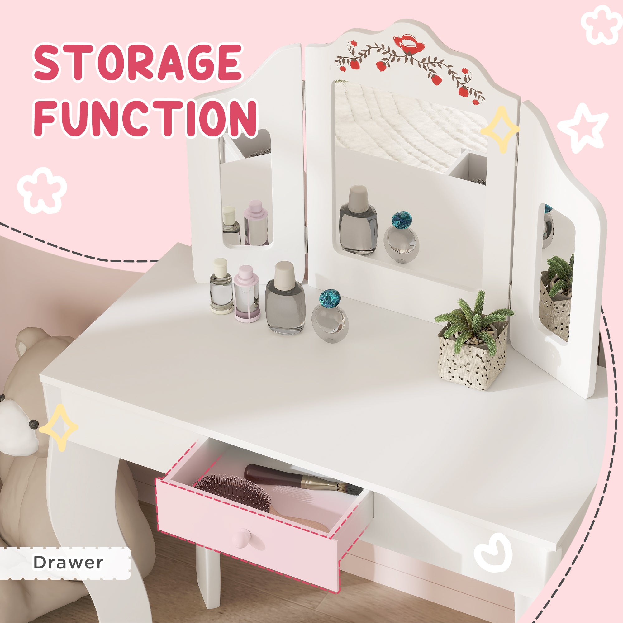 Versatility and functionality: Thanks to its removable mirror, the dressing table easily transforms into a desk for drawing, writing, or homework. This dual purpose encourages creativity while optimizing space in your child's room.