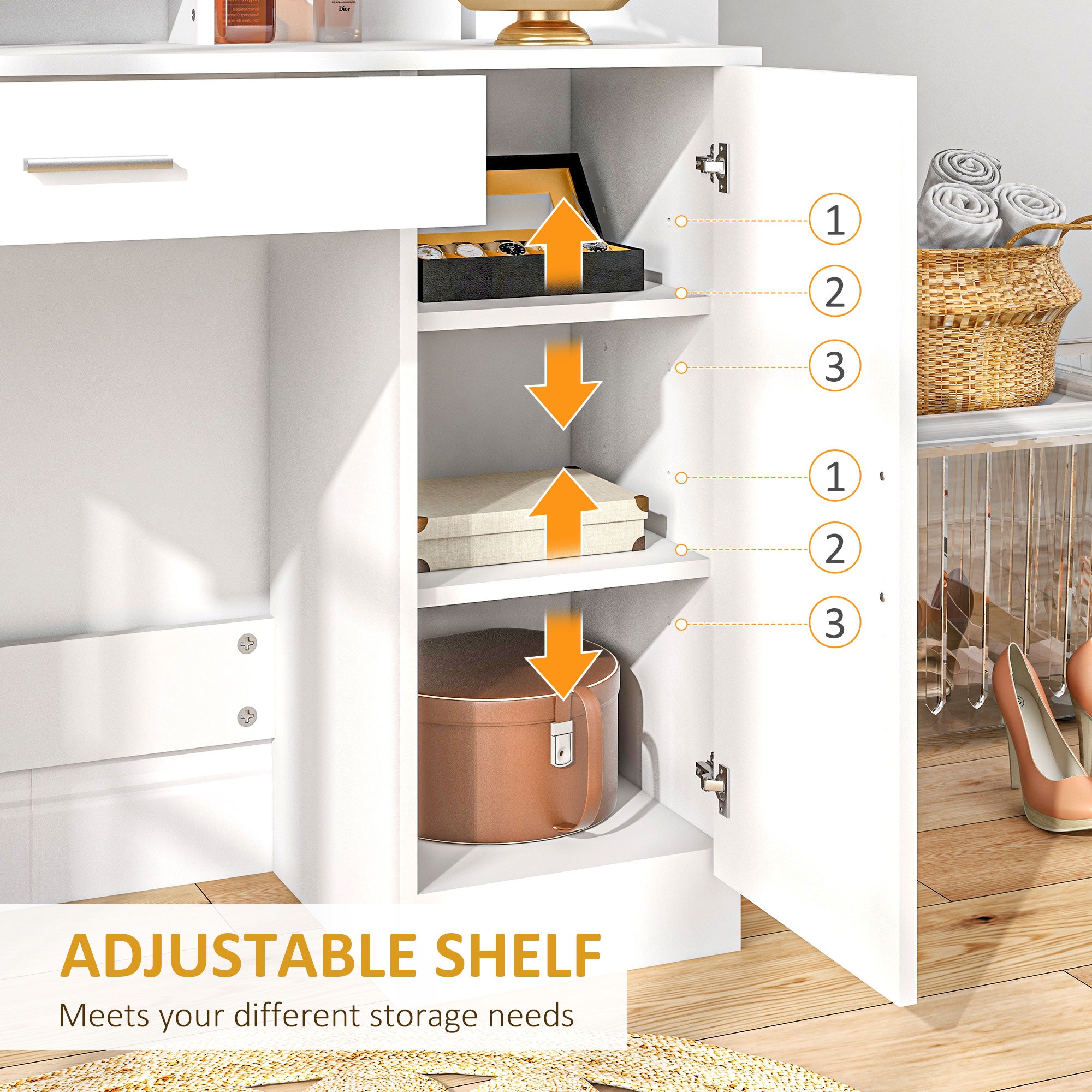 Clever storage and organized design: This dressing table features a cabinet with doors, a sliding drawer, and three open shelves to keep your beauty products, accessories, and perfumes perfectly organized. Adjustable interior shelves make it easy to adapt the space to your needs.