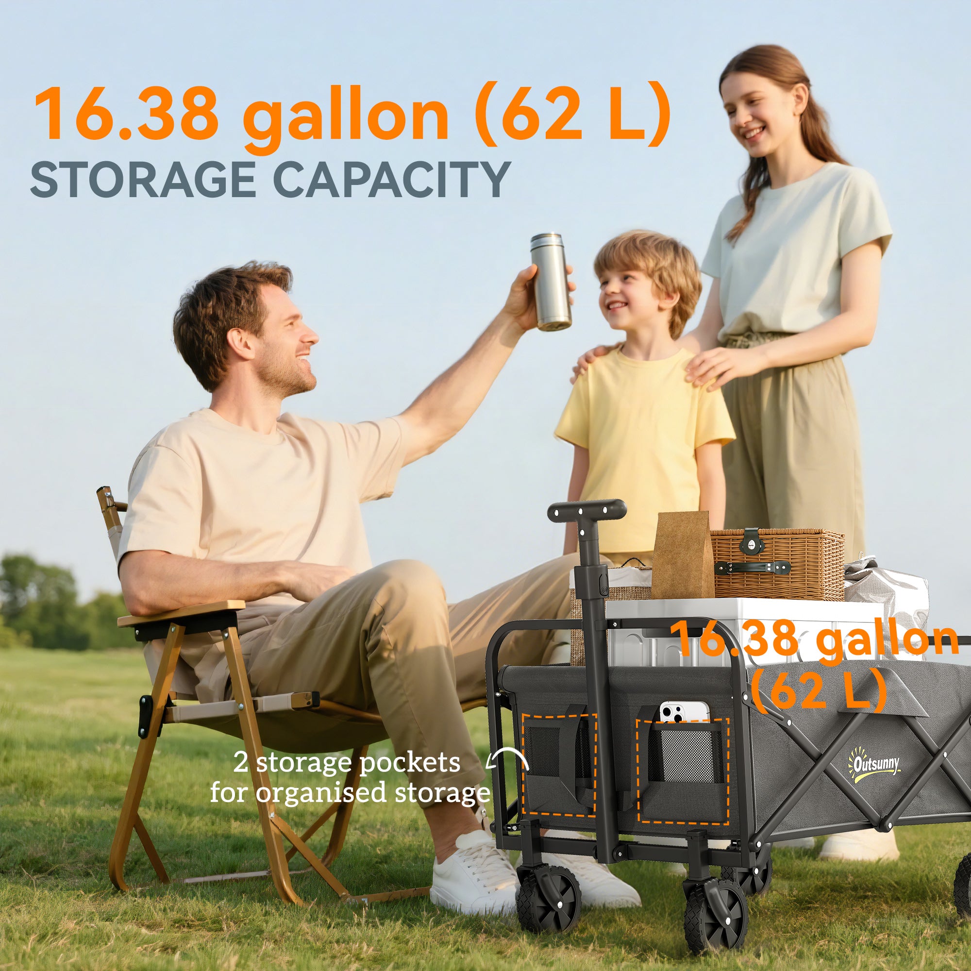 This versatile garden cart is designed to simplify all your outdoor adventures. Its spacious 62-liter cargo bag makes it easy to transport camping gear, food supplies, or festival equipment. The adjustable telescopic handle ensures a comfortable grip and excellent maneuverability.